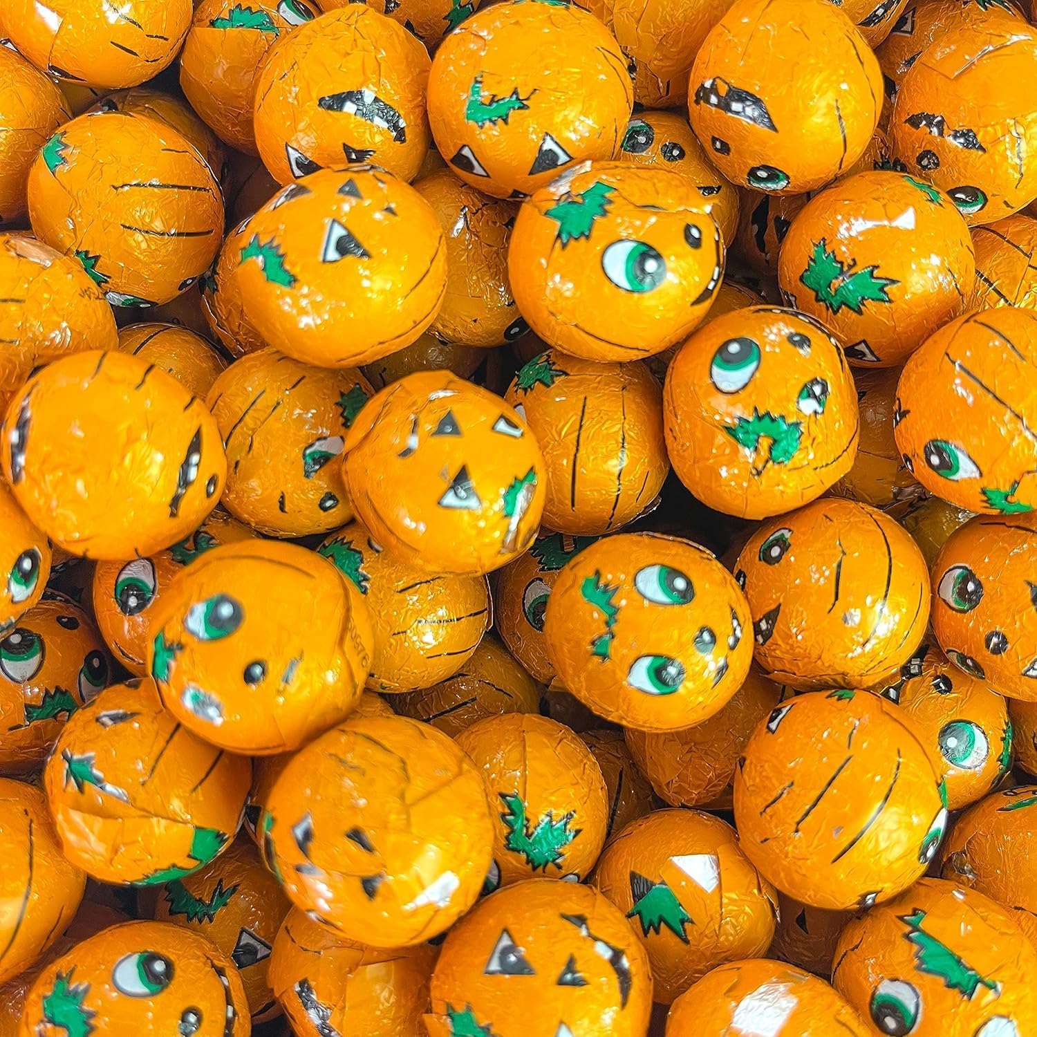 HALLOWEEN TREAT: Perfect 18mm diameter festive foil wrapped milk chocolate pumpkin-shaped balls ideal for trick-or-treating and seasonal celebrations