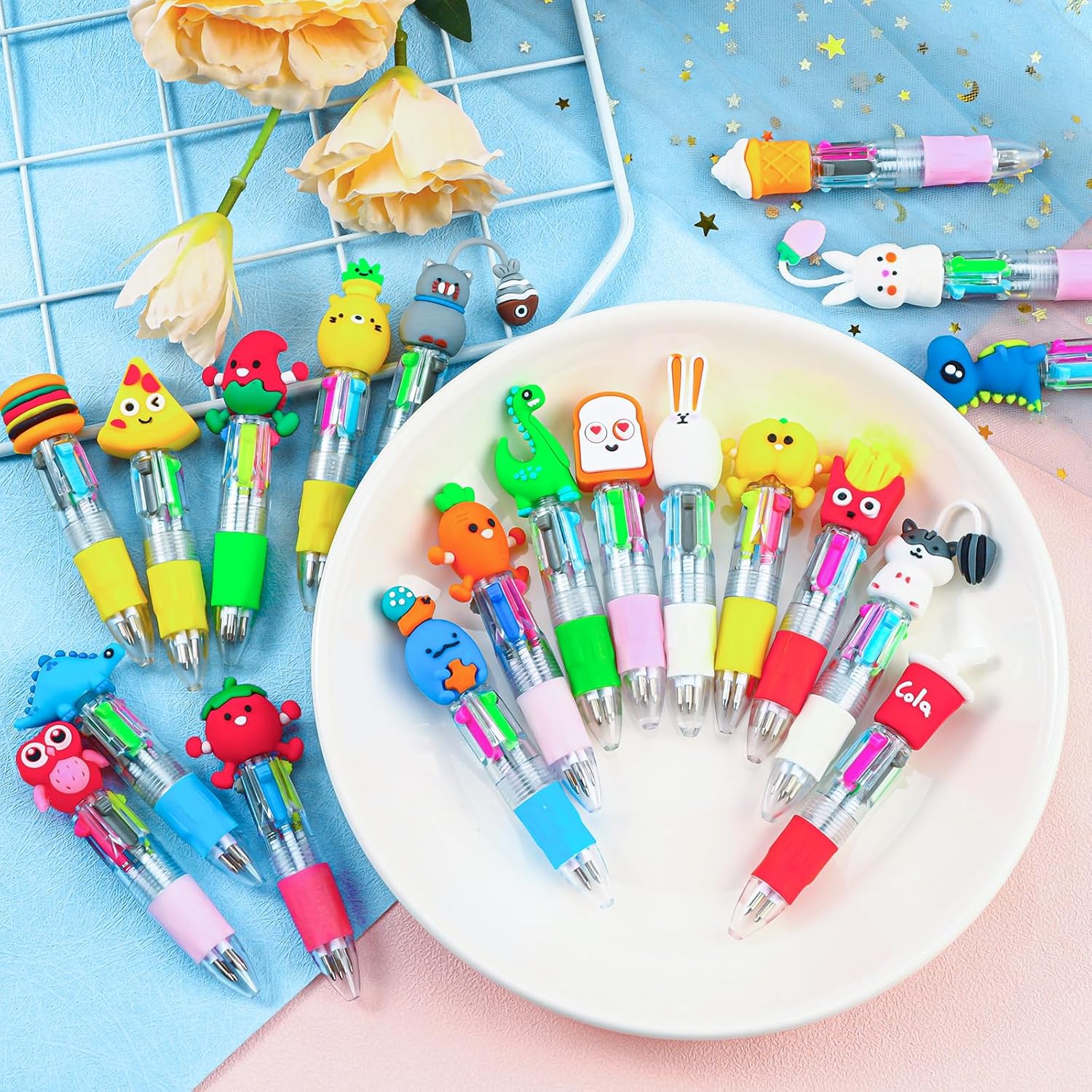 【Cute Pens Set】A pack of 32 brightly coloured ballpoint pens ensures that every student in the class or party guest has their own versatile pen. The shorter length of these pens adds to their cuteness and allows small children to hold them easily and comfortably.
