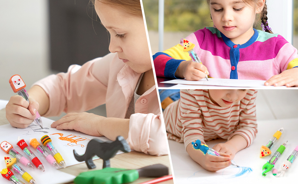 【Efficient and Suitable for Children】These cute and creative animal multicolor ballpoint pens are slightly shorter and designed for younger users. Their cute and compact design makes it especially suitable for children aged 3-10 years old, ensuring a comfortable grip for small hands.