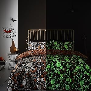 And guess what? When the lights go down, the magic begins as all the bewitching characters and spooky ghosts glow in the dark, casting an eerie and enchanting glow on your bed.