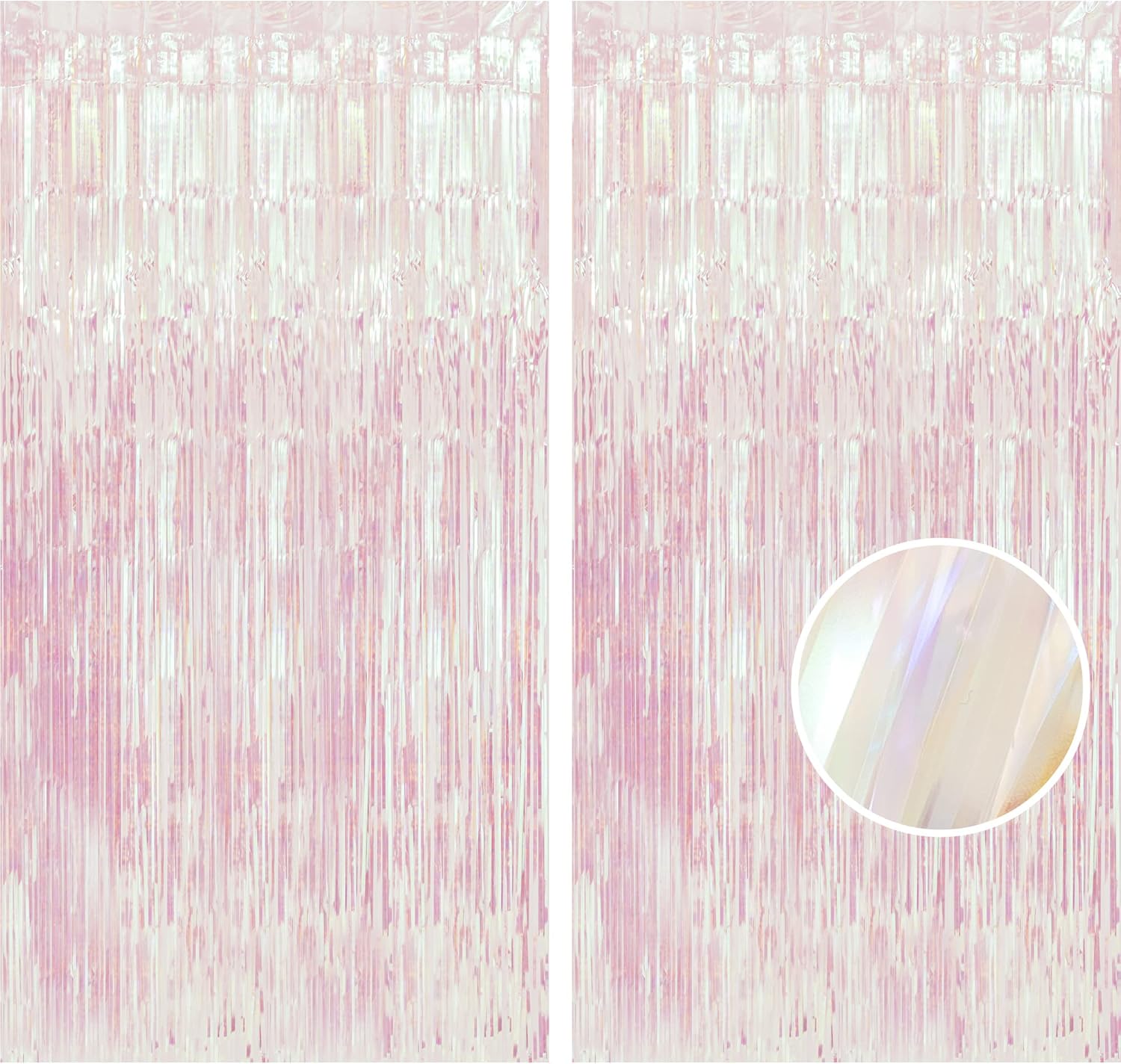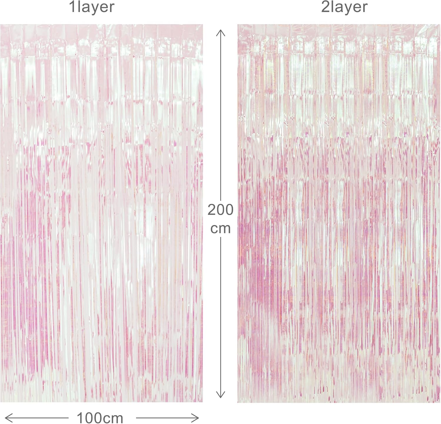 Package Contents: Iridescent tinsel curtains are made by sparkling fringe. 2 Packs/SET, enough quantity for your party decoration. Each foil curtain is in size of 1m x 2m(3.28×6.5ft), enough length for decorate your house party. And the durable material allows you to use the iridescent backdrop repeatedly.