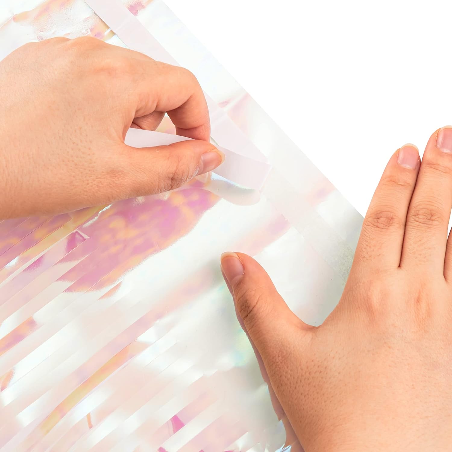 Perfect Photo Backdrop: Perfect as a foil streamers party backdrop for birthday, valentines day decorations, bachelorette party decorations, graduations, Halloween, Christmas, New Year Eve, mardi gras, sweet 16, movie night, fairy party, unicorn party, farewell party, retirement party wedding more. Great for ceilings, windows and wall curtain decorations. After cutting, iridescent fringe curtain is also suitable for table decoration. Use your creativity to leave fabulous party photos for you.