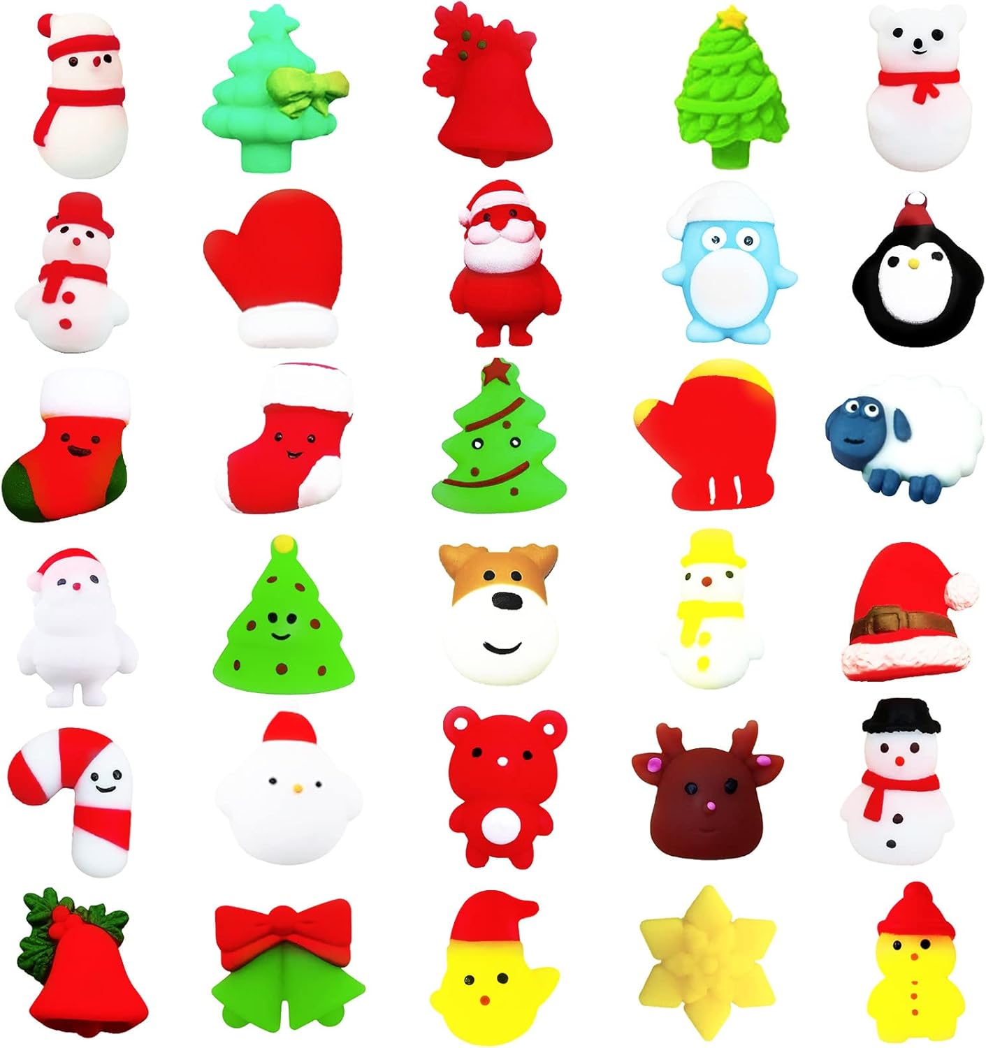 Christmas Mochi Squishy Toys,30 Pack Mini Kawaii Stress Squeeze Toy Moji Toys Christmas Squishies Mochies Fidget Toys for Xmas Party Bag Fillers Kids Girls Boys Birthday Gift,Christmas Stocking Filler