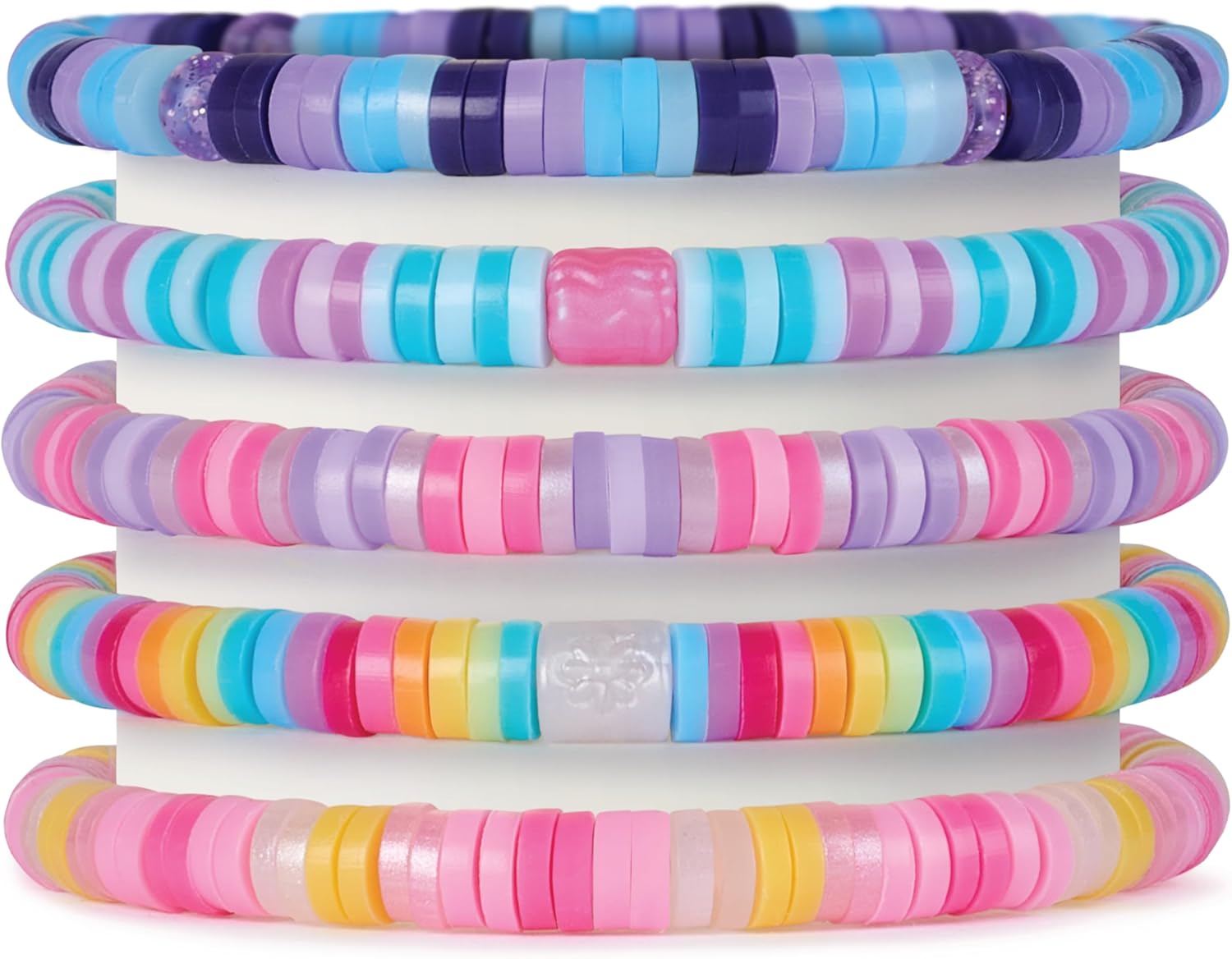 Over 1200 bracelet beads: Includes 1220 colourful heishi beads & 10 pearlised feature beads for endless possibilities. Kids can make their own stack or use the design ideas to get inspired