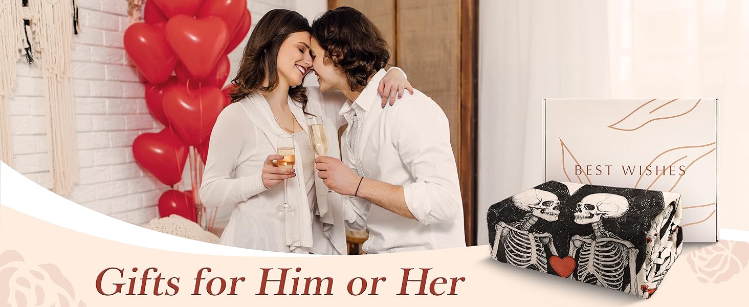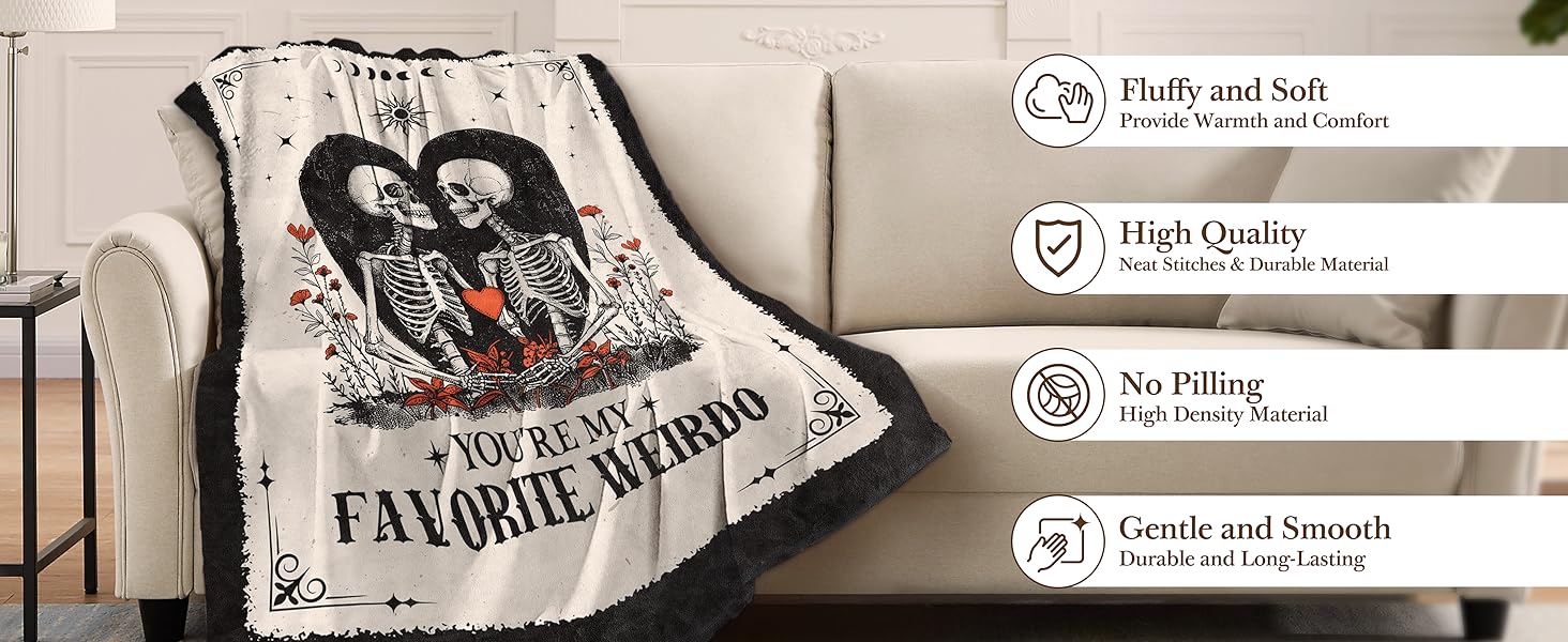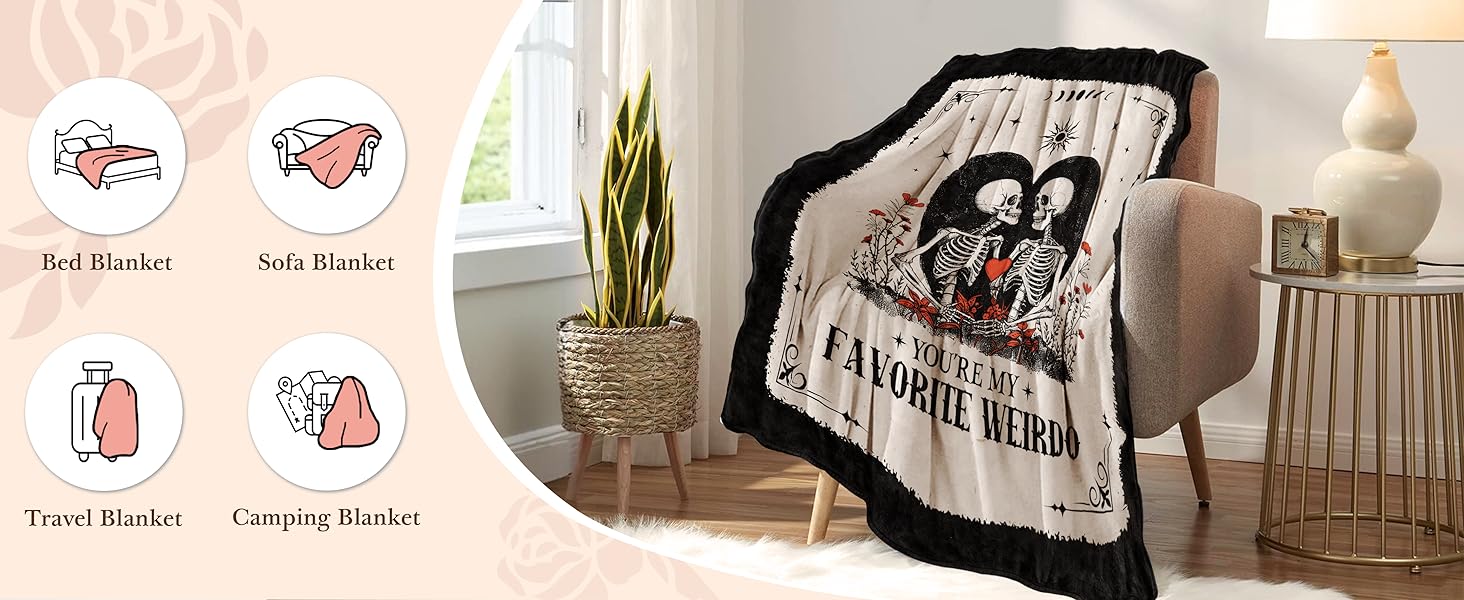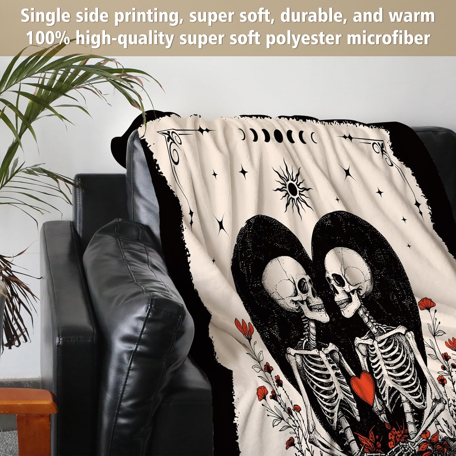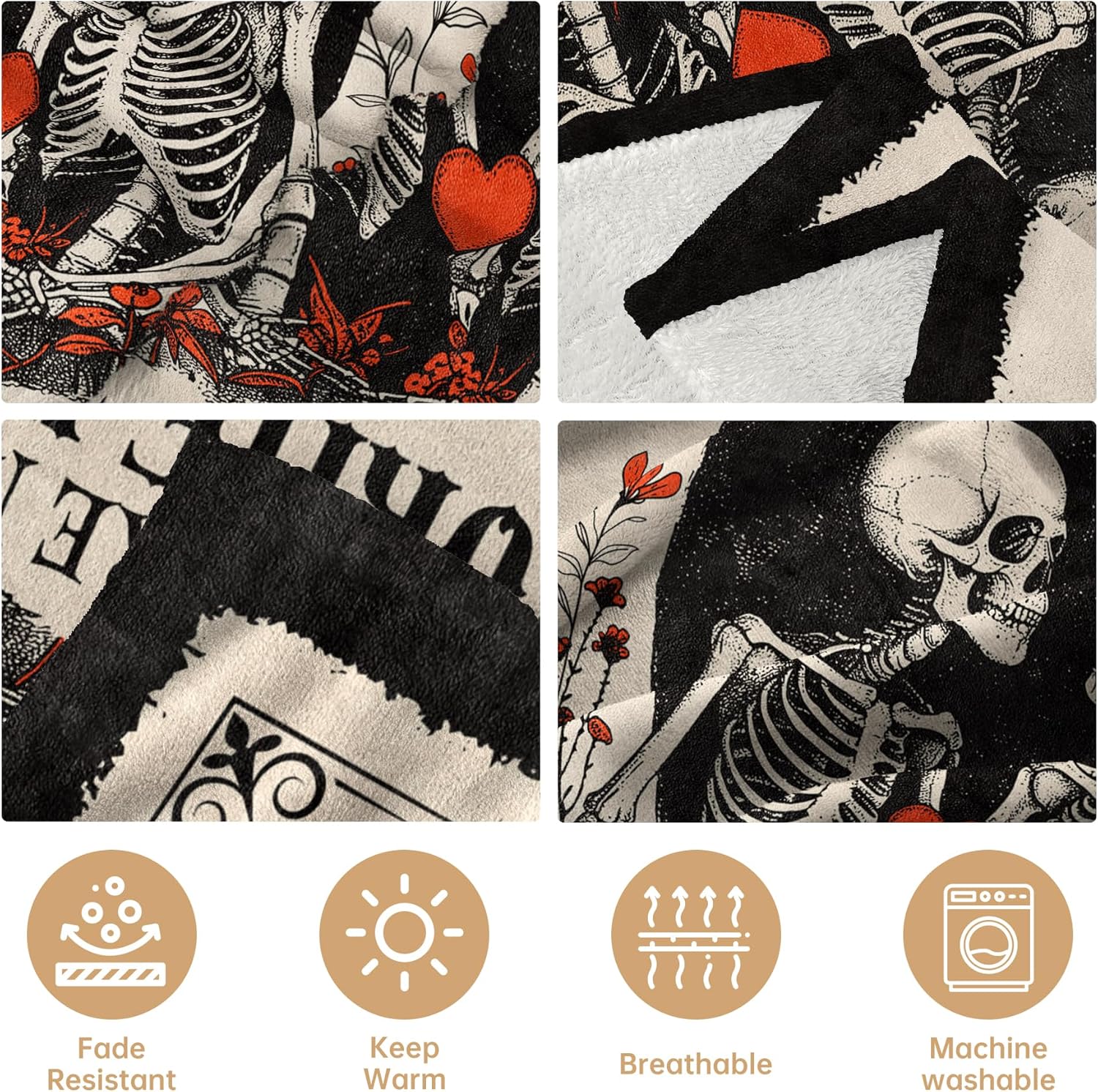 【Romantic Gifts for Her or Him】: This blanket is a unique way to remind your loved one how much you love and cherish them. The image of skeleton couples symbolizes deep love and eternal commitment, highlighting that love endures even in the face of mortality. Let it serve as a constant reminder of the warmth and affection you bring into each other’s lives