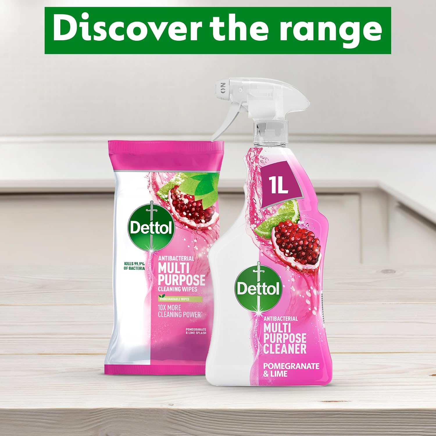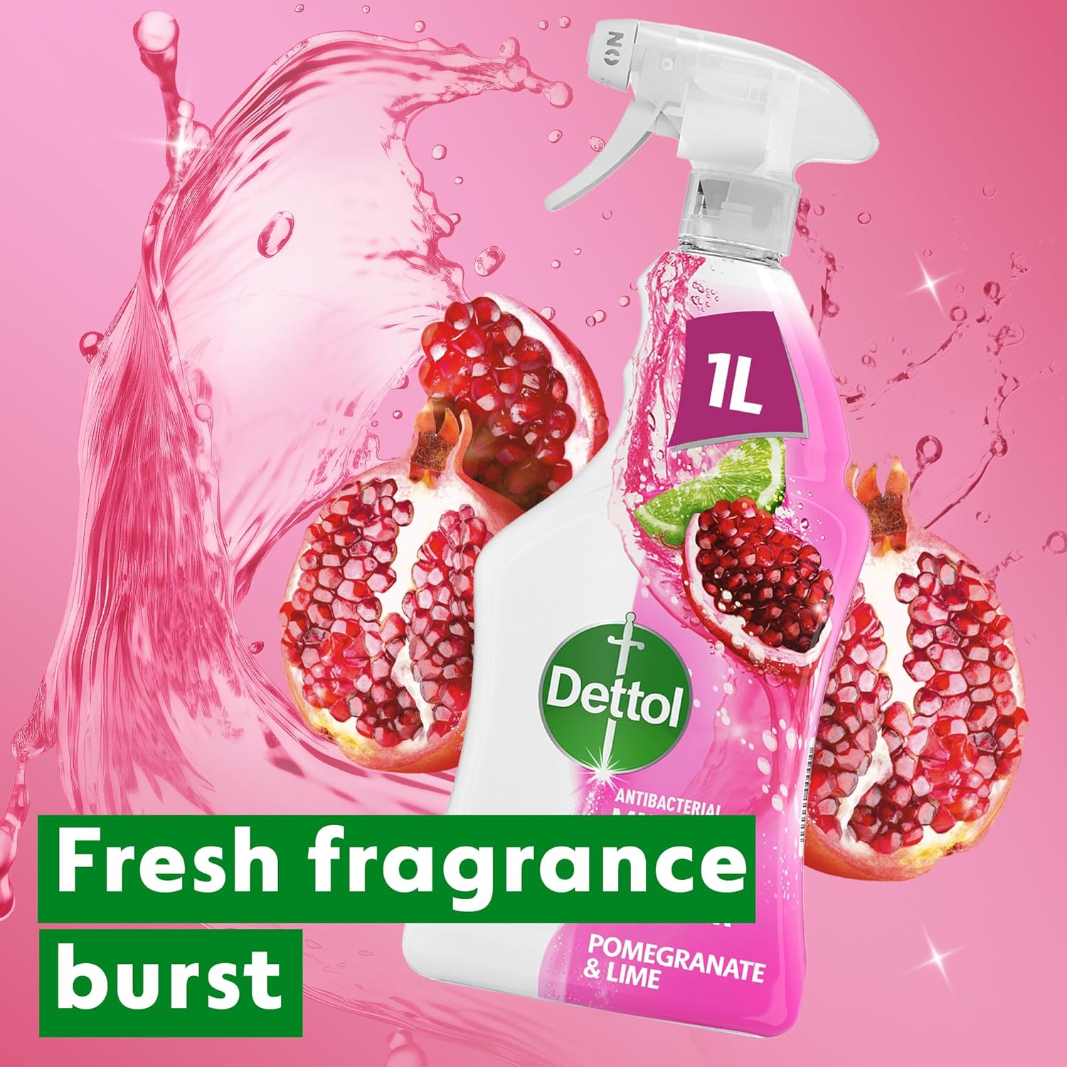 Dettol Antibacterial MultiPurpose Cleaner Pomegranate & Lime, Multipack of 6x1L