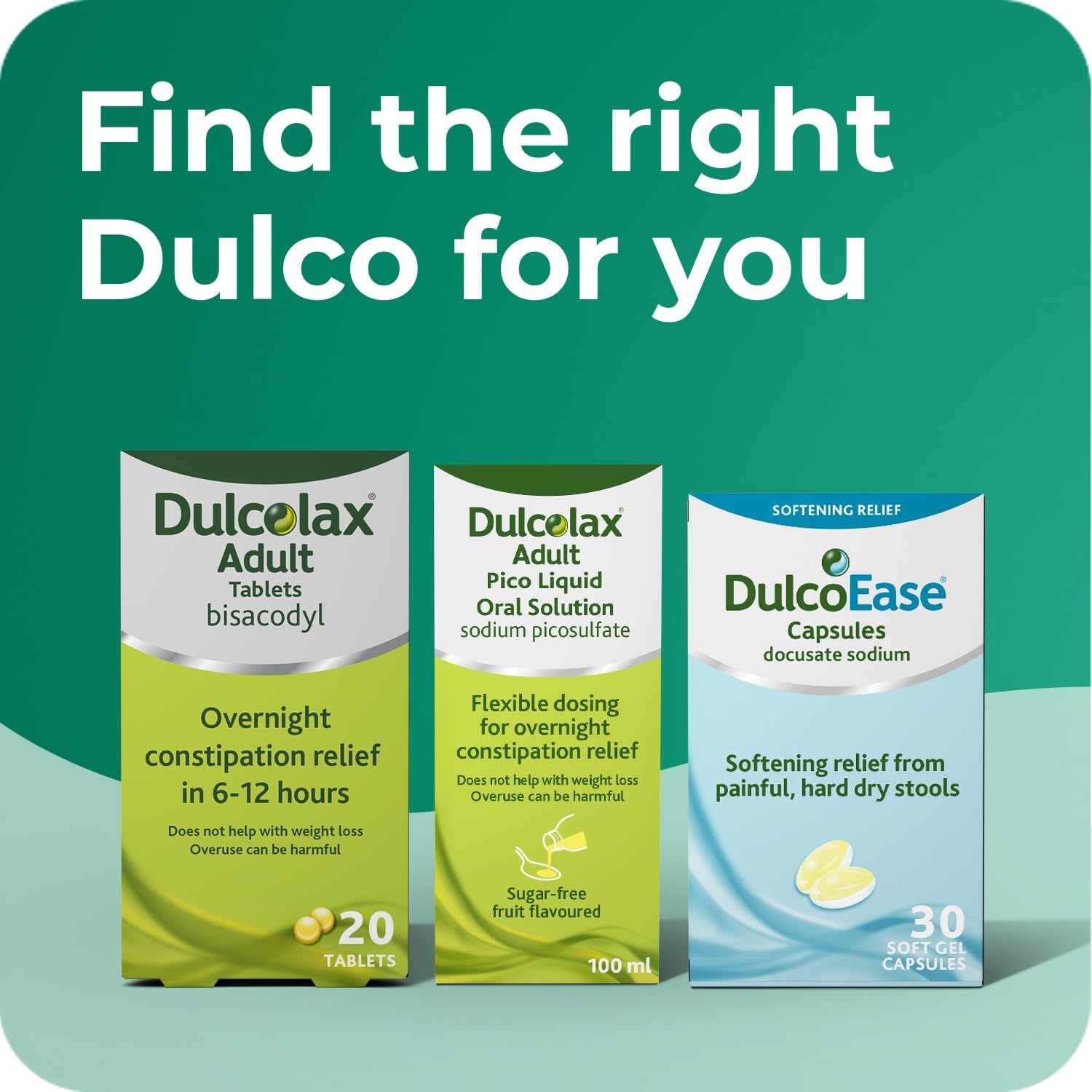 Dulcolax Adult 5mg gastro-resistant tablets work overnight in 6-12 hours with your body to effectively relieve you from occasional constipation. If you take it at night, you should be able to go to the toilet in the morning, in the comfort of your own home. Dulcolax Adult works with your body by stimulating the bowel muscle to promote a bowel movement. These laxative tablets have a gastro-resistant coating, so it works where needed, the tablets are small in size so easy to swallow and easy to take on the go when travelling. MAT-GB-2002744 (v1.0) Sept 2020