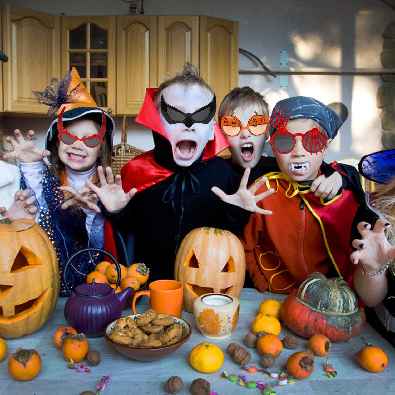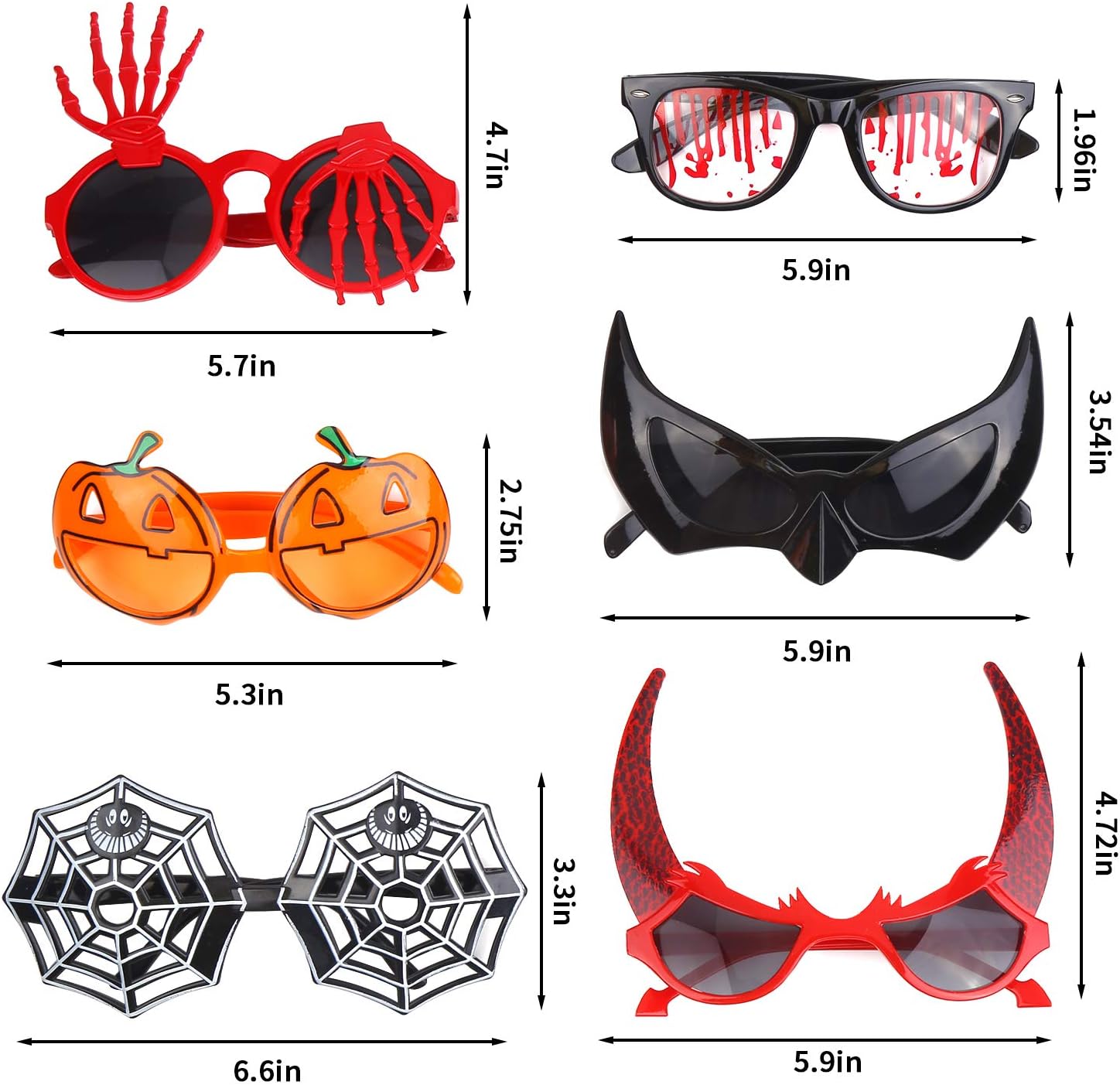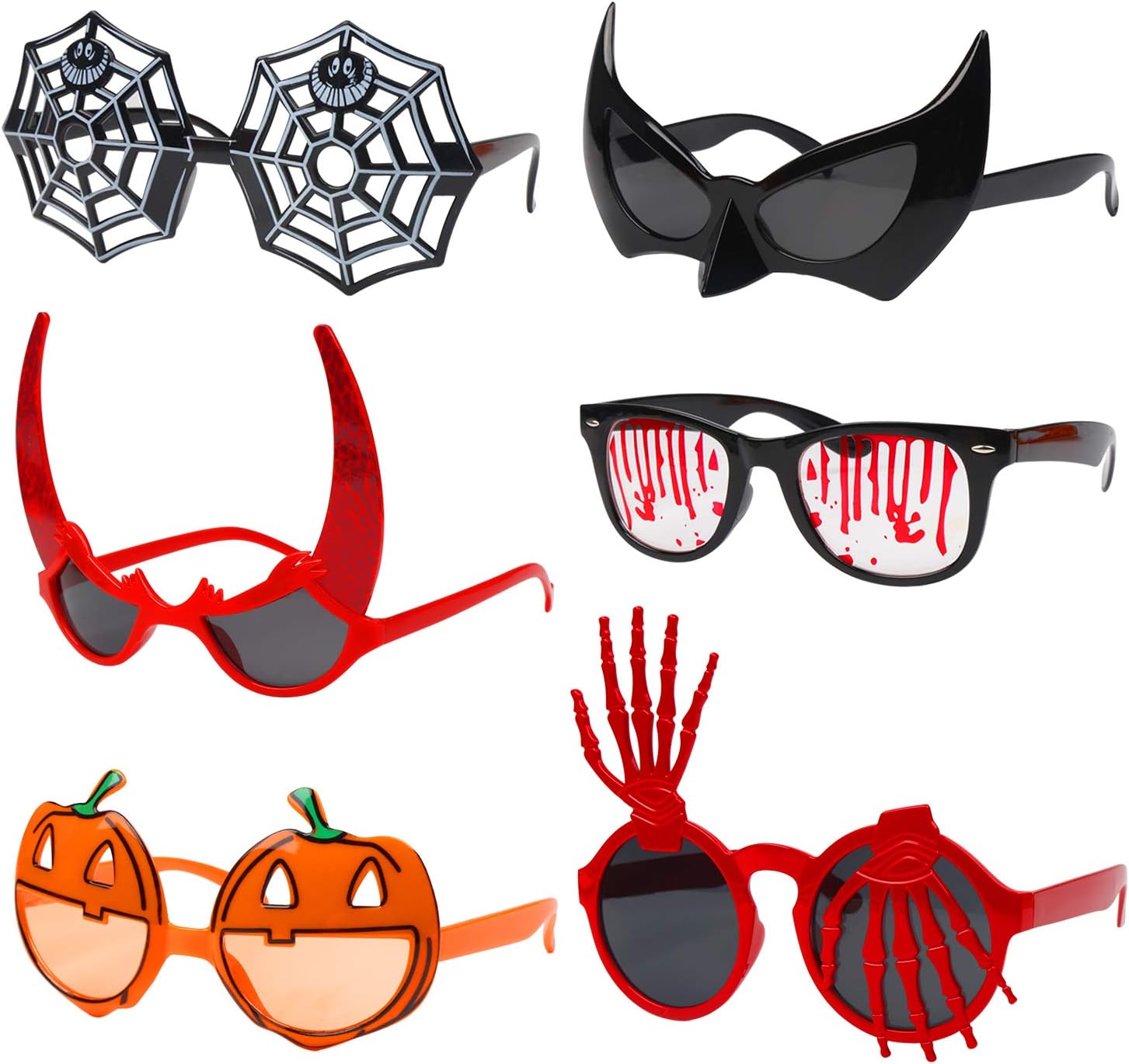 FINGOOO 6 Pieces Halloween Theme Glasses Kit Halloween Costume Party Supply for Kids and Adult, 6 Styles Assorted