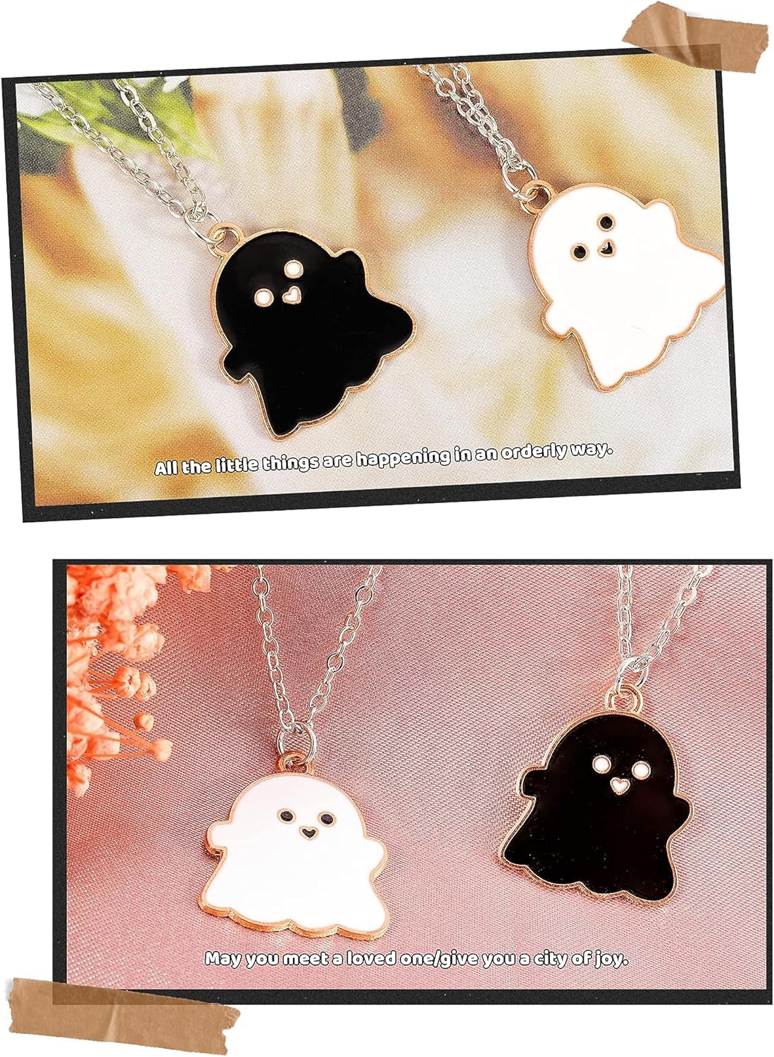 πŸ‘»πŸ‘»This necklace is inspired by the mysterious ghost theme and has a unique and charming design. And it combines black and white elements, presenting a contrasting color combination.