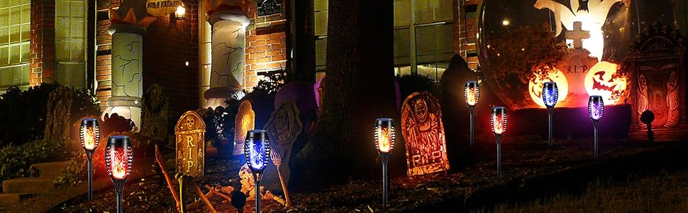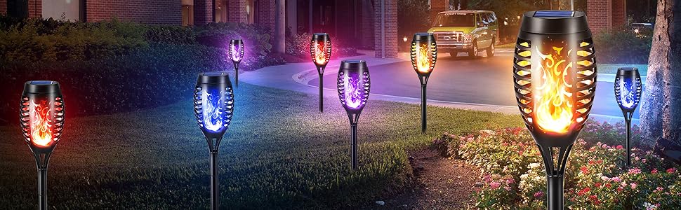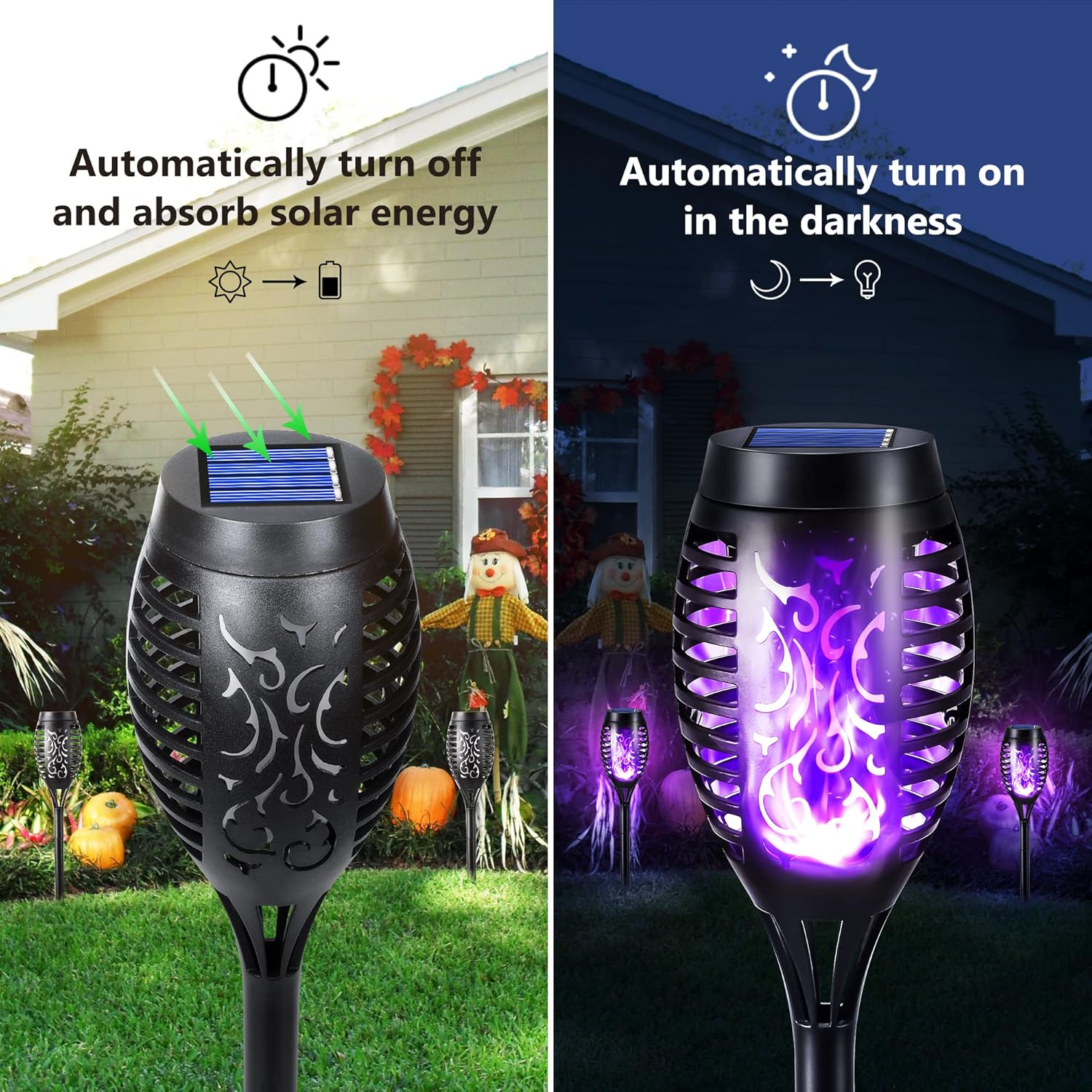 Solar Flame Light has upgraded the LED lights to extremely realistic flame torches that are alive, lively, and stronger, creating an atmosphere of joy for you and your family. Solar lights outdoor garden with flickering flame are ideal to decorate the Halloween garden, patio, lawn, party, barbecue, camping.