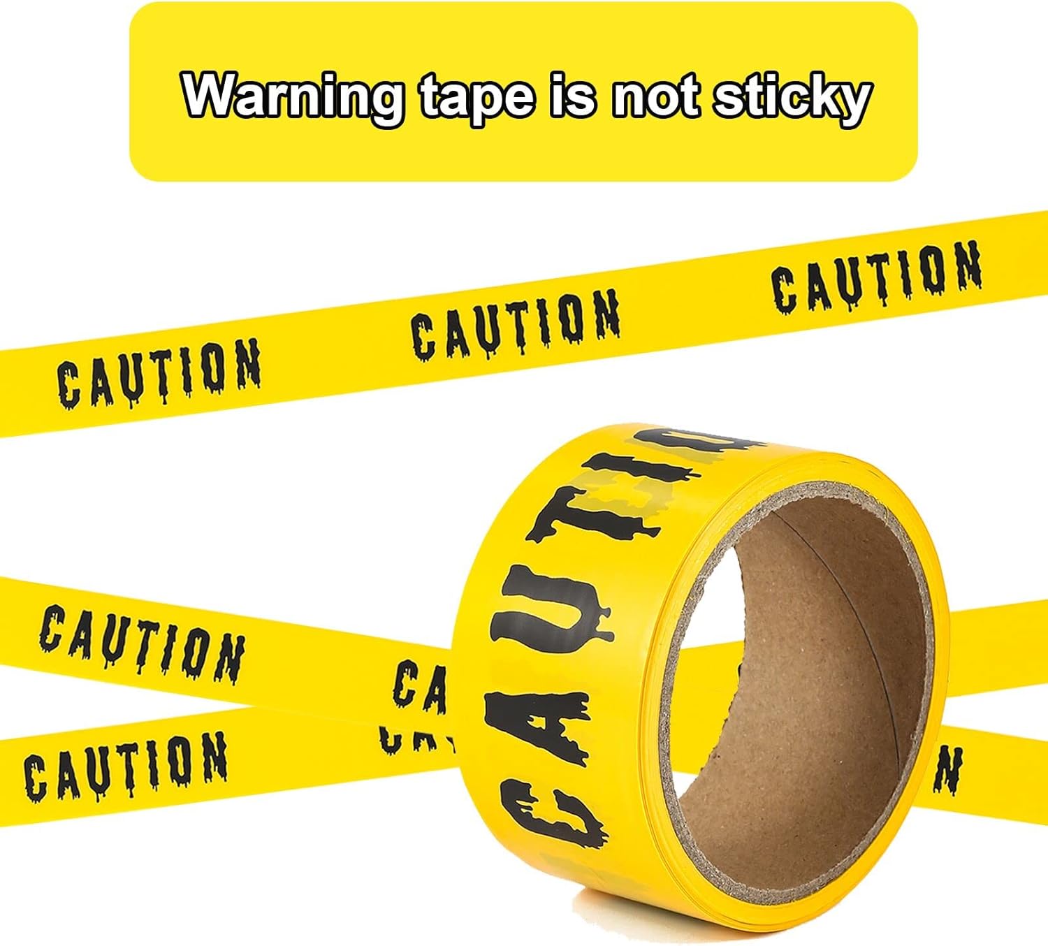 【Halloween Hazard Warning Tape Without Self Adhesive】: Our barrier tape is without self adhesive . The yellow tape unrolls quickly. he danger tape can be tied or tacked to posts, trees etc.