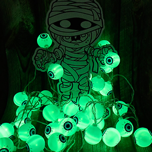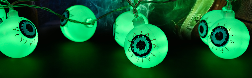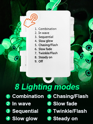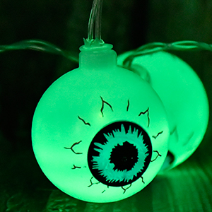 Eyeball shell with green light 30 LED with 8 lighting modes. You need to gently toggle the switch can enjoy these 8 modes, a must for Halloween decoration.