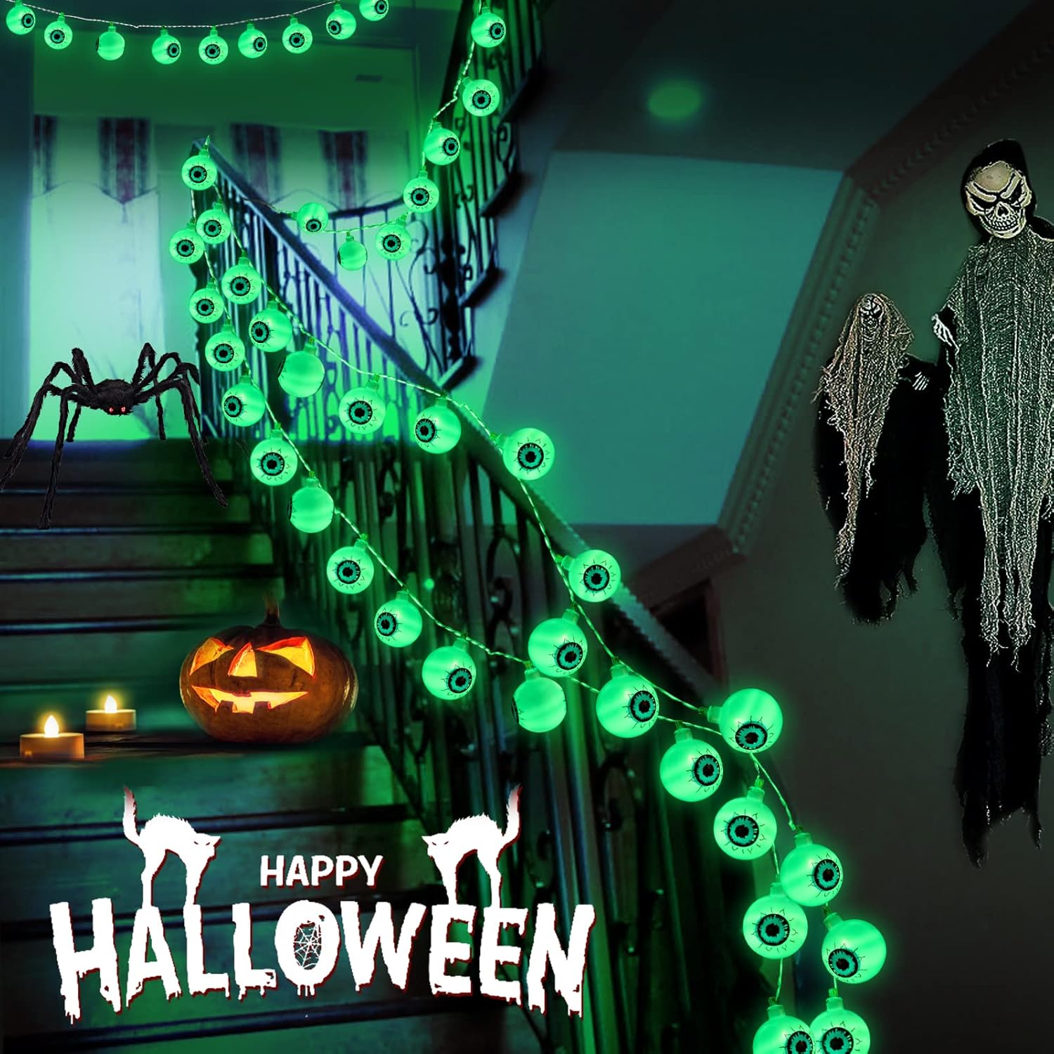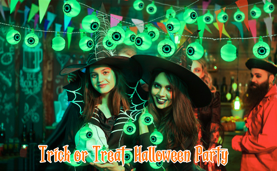 🎃【Widely Used】The Green Eyeball String Lights can easily hang on walls, pumpkin, yard, garden, porch, fence, etc. Very suitable for Halloween theme parties, role-playing parties, celebrations, carnivals, etc.
