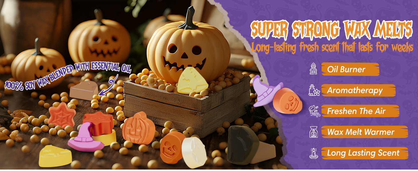 Long-Lasting and Even Melt – Designed for extended use, our wax melts offer hours of consistent fragrance. The high-quality soy wax melts evenly, ensuring that every piece releases its aroma gradually, filling your home with a pleasant and enduring scent. This adds a festive touch to your Halloween decor while ensuring your space smells wonderful.
