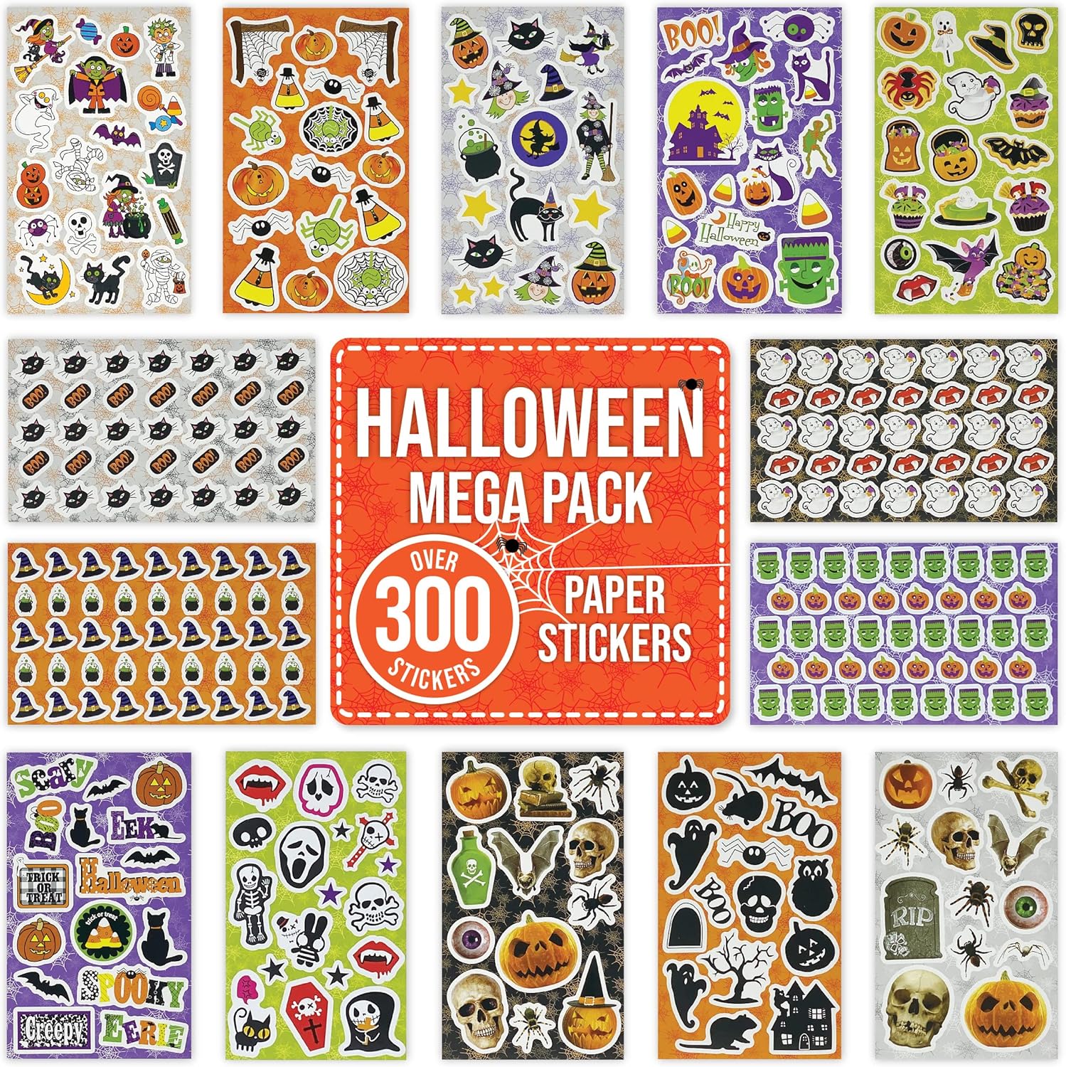 OVER 300 HALLOWEEN STICKERS: Includes OVER 300 high quality Halloween stickers on 14 sticker sheets. These stickers will fully meet your craft needs whether they are for decorating, scrapbooking or party bag fillers. Each sticker sheet is 13.5 x 8cm and the sticker sizing ranges from 1cm to 4.5cm. The stickers can be attached to scrapbooks, walls, objects & clothing. These Halloween themed stickers will give you that extra spooky touch.