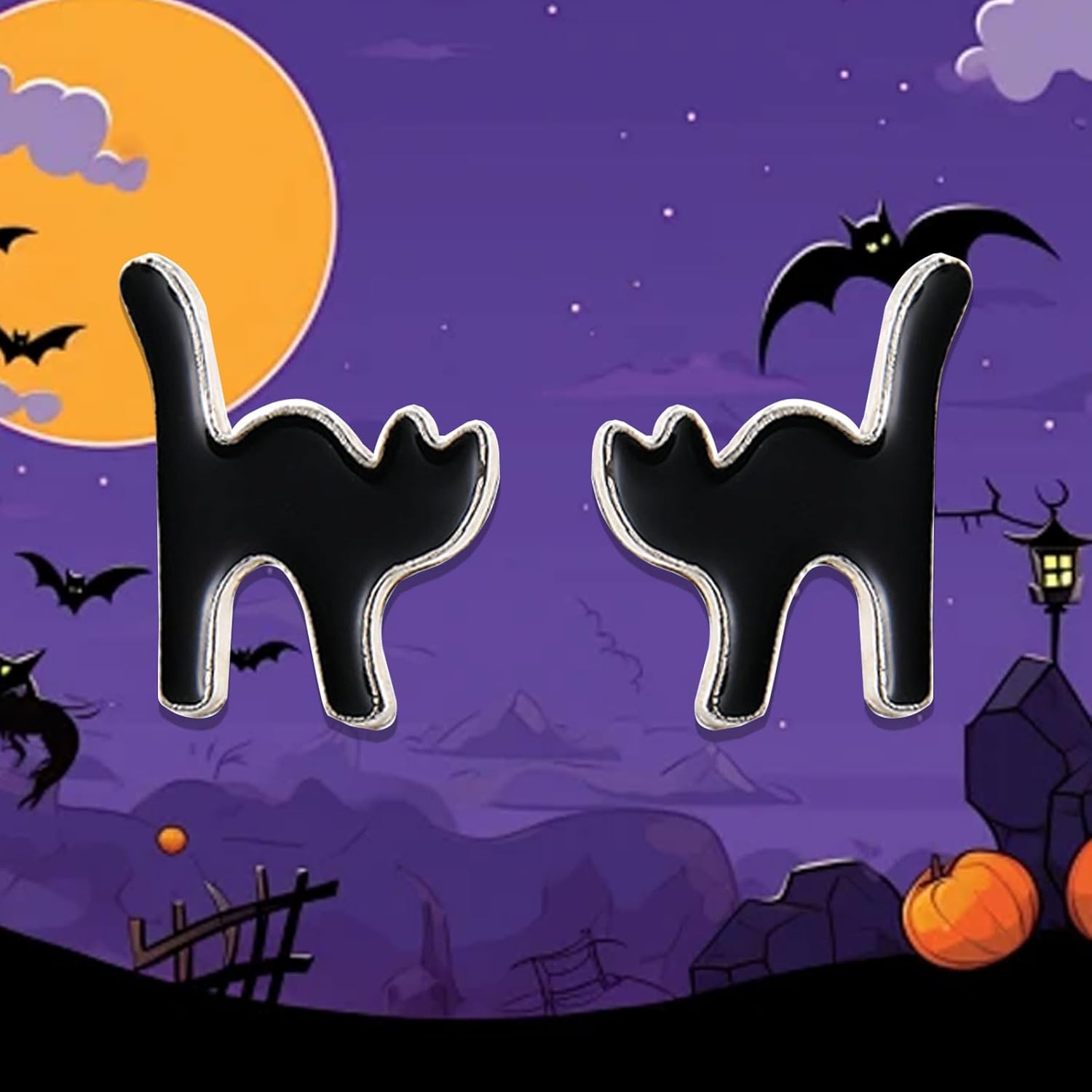 Halloween Stud Earrings Set,MUNSKT 6 Pairs Include Pumpkins,Black Cats,Ghost, Bats Stud Earrings for Halloween Party Accessories