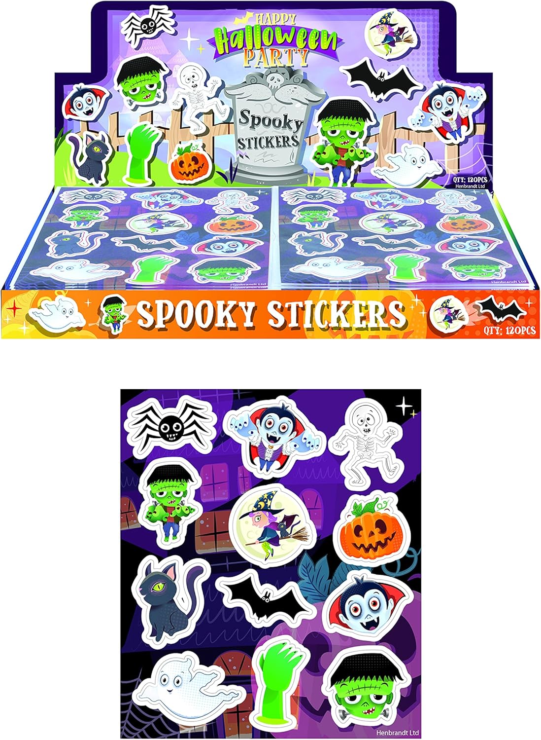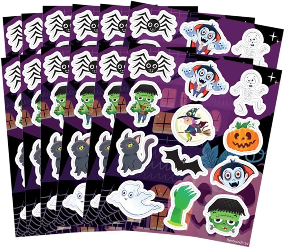 Henbrandt 12x Halloween Stickers Sheets Mini Halloween Stickers for Children Trick or Treat Party Bag Fillers Reward Stickers Arts and Crafts for Kids Loot Bag Lucky Dip Favours for Girls and Boys