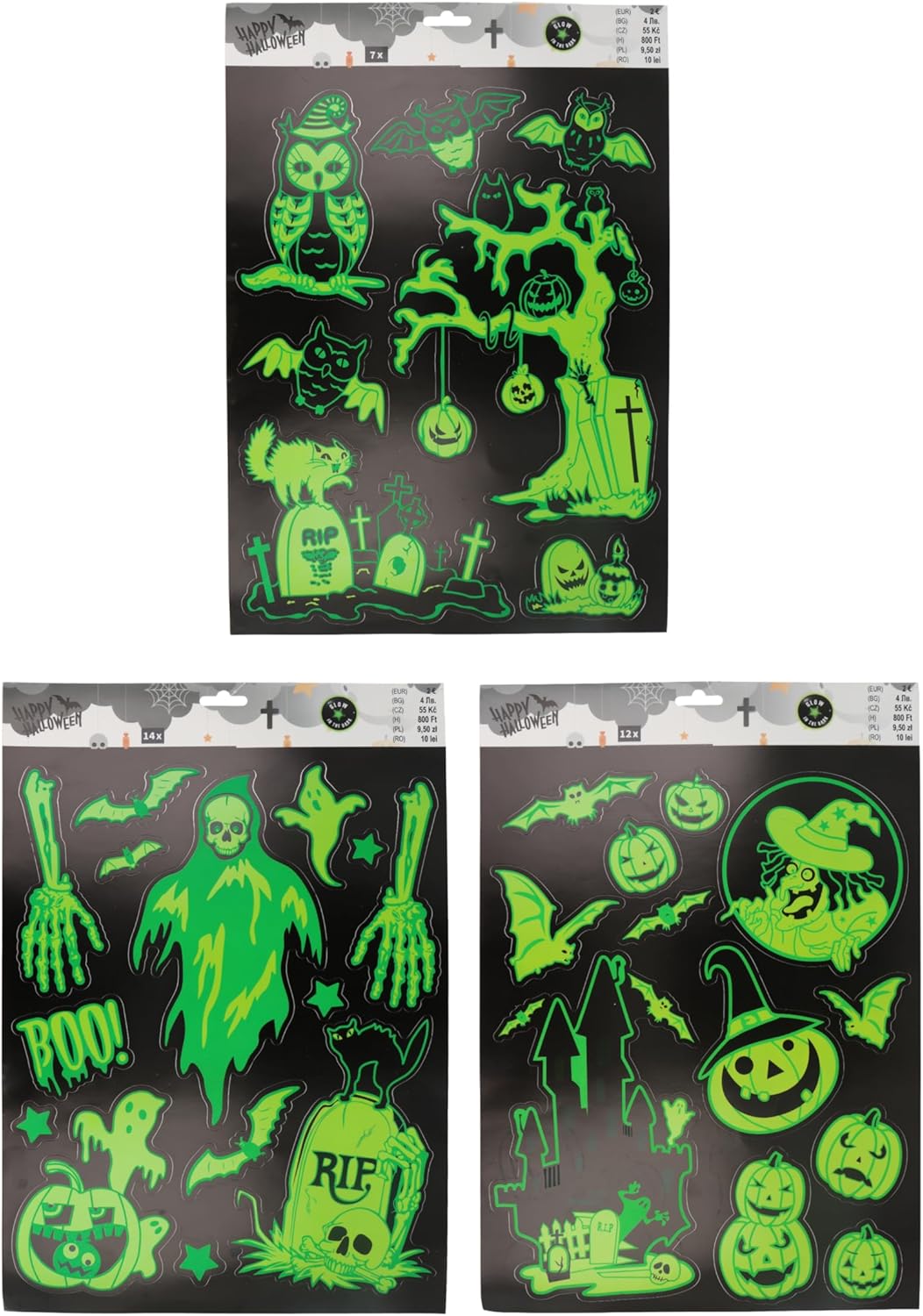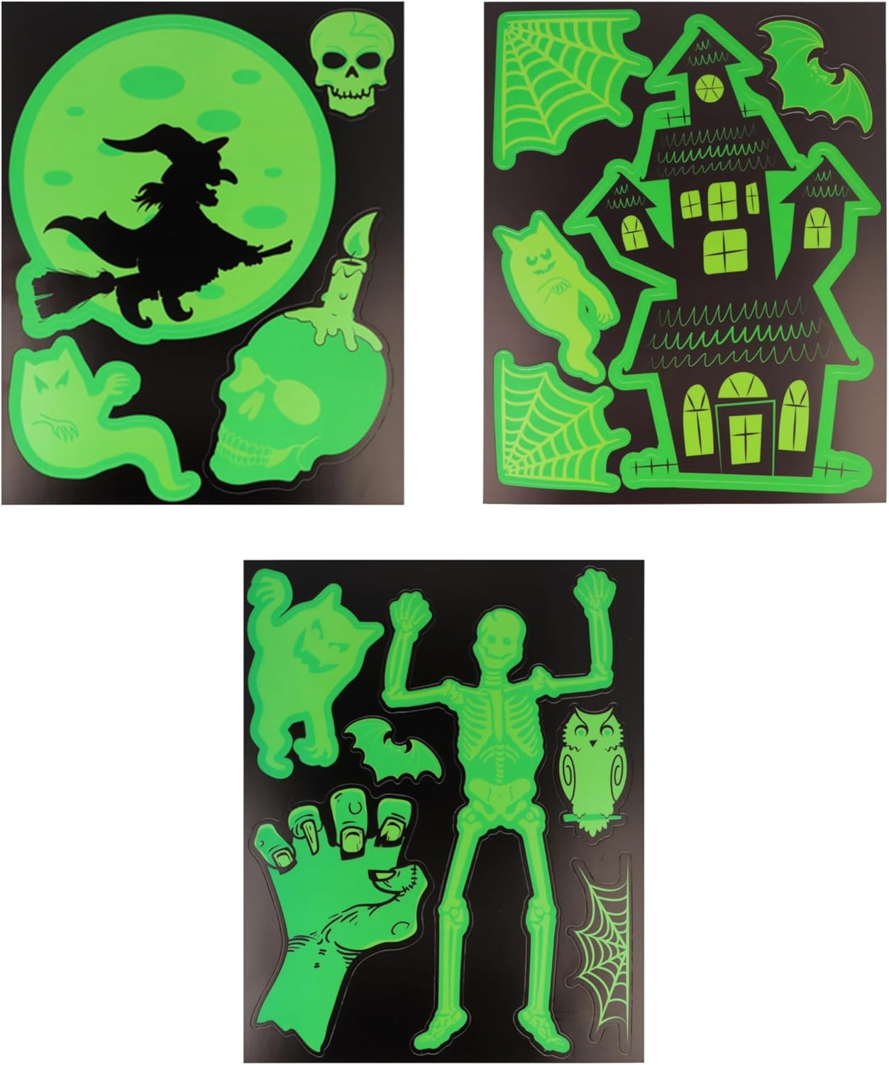 Crafted with high-quality, durable materials, these window stickers measure 20cm x 25cm and include three distinct designs: a skeletal figure, a witch against a moonlit backdrop, and a haunting haunted house scene. Each sheet is designed to be easily applied and removed without leaving residue, making them perfect for temporary seasonal decorations.