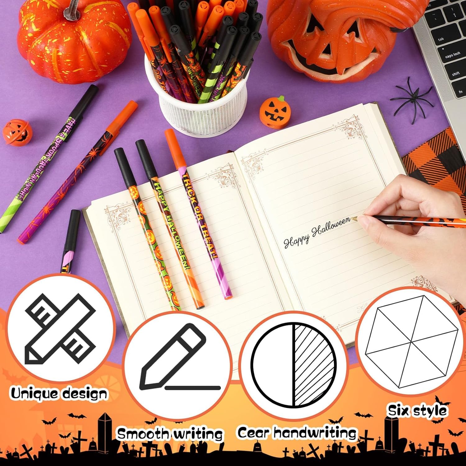 Halloween Theme Design: Our Halloween pens bulk has 6 styles, designed in humor, cute, scary and other Halloween style. The cute pens are printed with pumpkin, bat, spider, trick or treat, have a spook-tacular night, happy Halloween,with bright colors, the patterns are clearly printed, highlighting the strong Halloween atmosphere, let people unconsciously immersed in the Halloween atmosphere