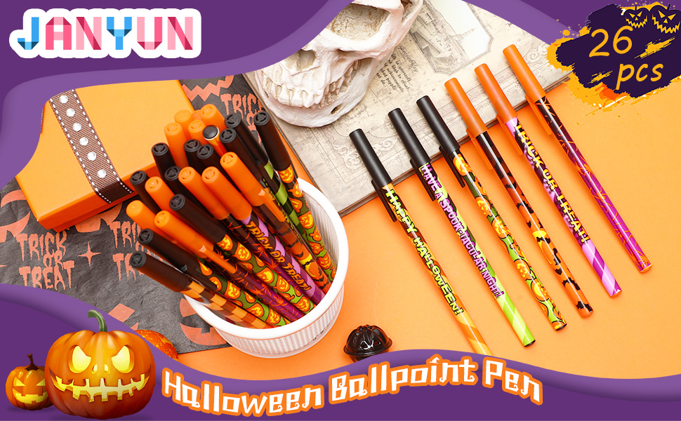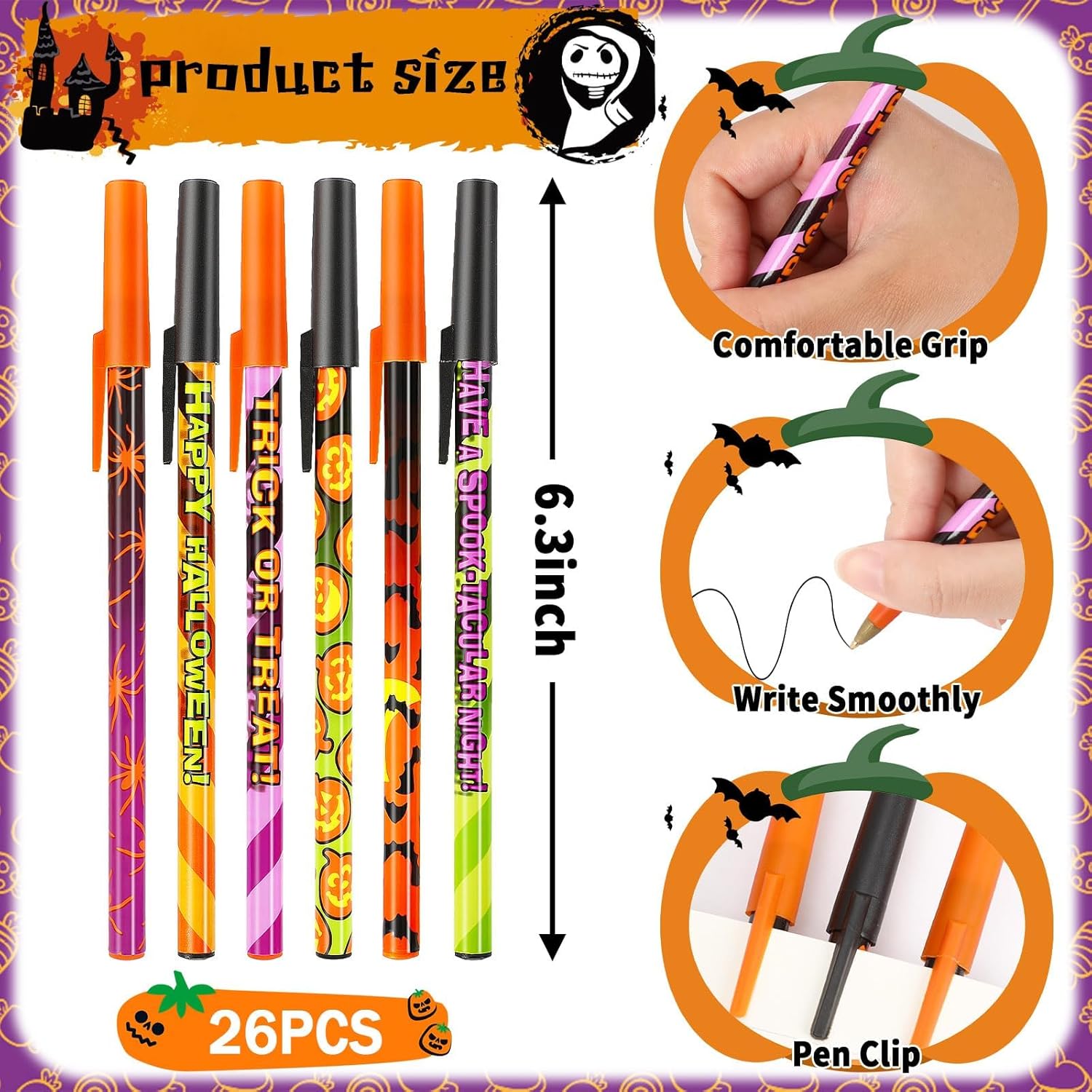 Halloween pens ballpointis designed with various Halloween element such as Halloween pumpkins, bats, spiders, etc., which are cute and funny, adding more Halloween atmosphere. Halloween pens are great party favors and bag fillers for Halloween parties. Cute Halloween black ink pens make kids have a fun Halloween.