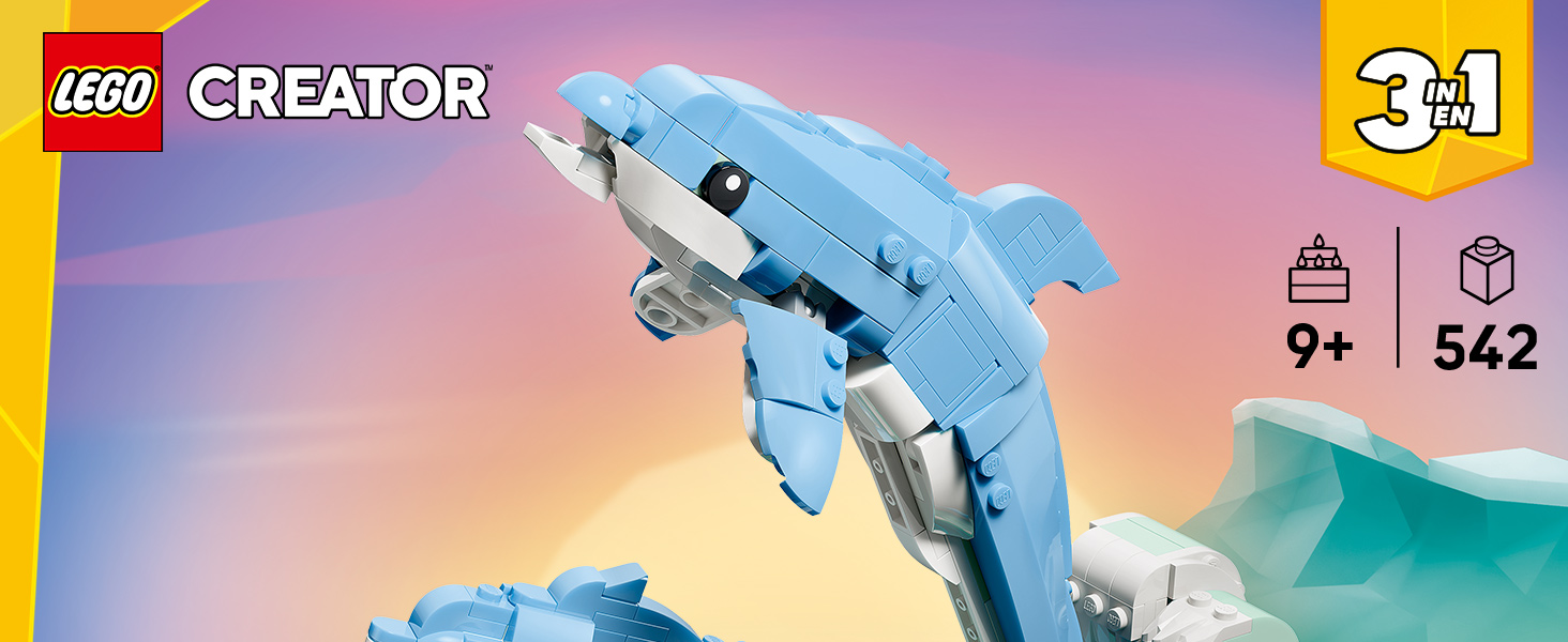 LEGO Creator 3 in 1 Sea Animals: Beautiful Dolphins building toy lets girls, boys and kids aged 9 and over get creative and build and rebuild 3 models with the same bricks.