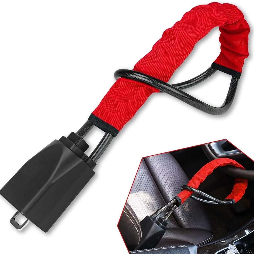 EASY TO LOCK, TOUGH TO REMOVE: Locking your steering wheel and seat belt is effortless with our design , it only takes seconds, However, removing it without the keys is an entirely different challenge, This car lock anti-theft device has an advanced locking mechanism which makes it extremely difficult for thieves to tamper with or remove
