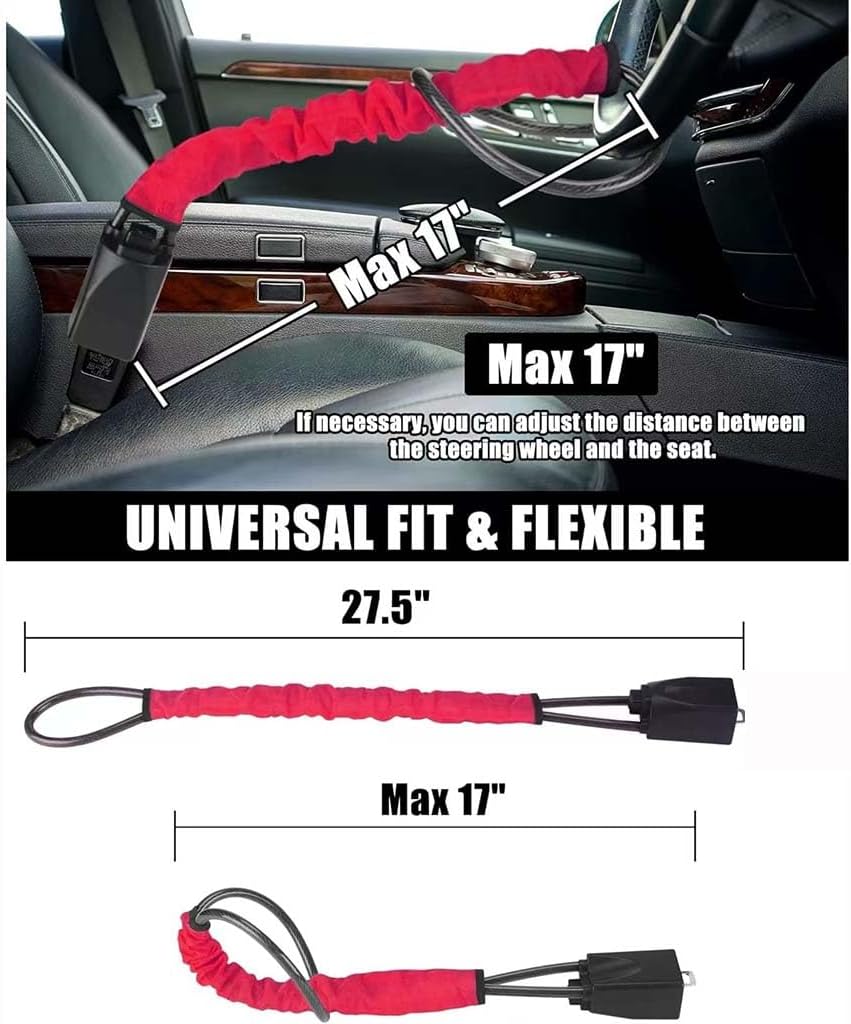 SPARE KEY INCLUDED: Our steering wheel lock comes with 1 lock and 3 keys so you can keep a spare at home if needed, Protect your ride with our steering wheel locks , always have a spare key on hand, ensuring that you’re never left stranded in case of a misplaced or lost key