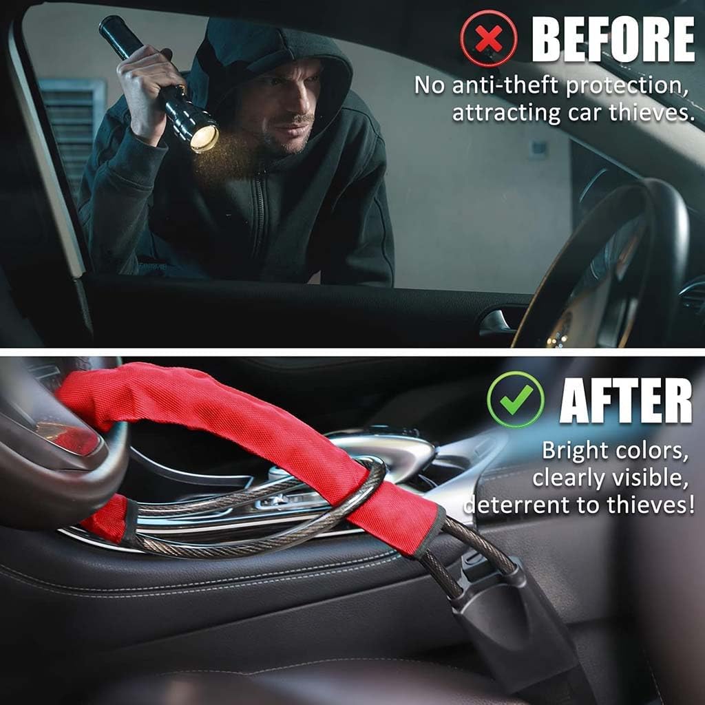HIGH QUALITY MATERIAL: Our high-performance braided steel cable provides superior resistance to cutting and sawing, while the anti-scratch material ensures that the steering wheel remains unblemished,Thickened steel wire rope, can withstand high tension and shear force