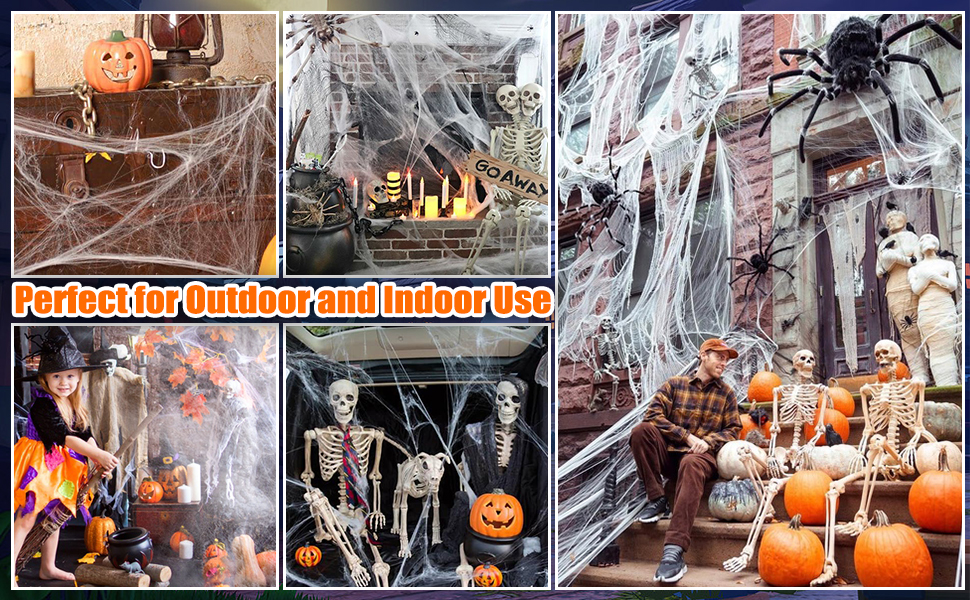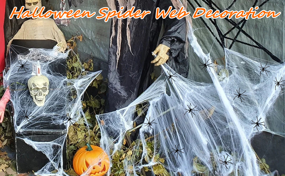 Perfect Halloween Party Decorations: Spider webs must be one of the simplest ways to add Halloween atmosphere to your haunted house or Halloween party. White spider web looks like real cobwebs, making your house looks like an abandoned cabin or your living room likes a creepy cellar.