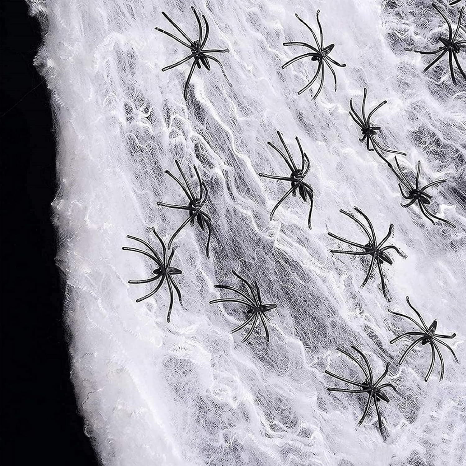 More Super Stretch Cobwebs: 60g Ultra-stretchable webs are enough to cover of your house indoor & outdoor, weaving all over windows, walls, and furniture etc. Made of soft material, hand-knotted and durable, flexible to be pulled into any shapes you want, the more you stretch the spiderweb, the more realistic it looks. Easy to clean up and will not damage your furniture.