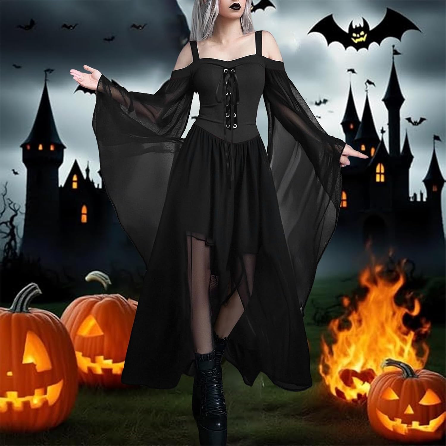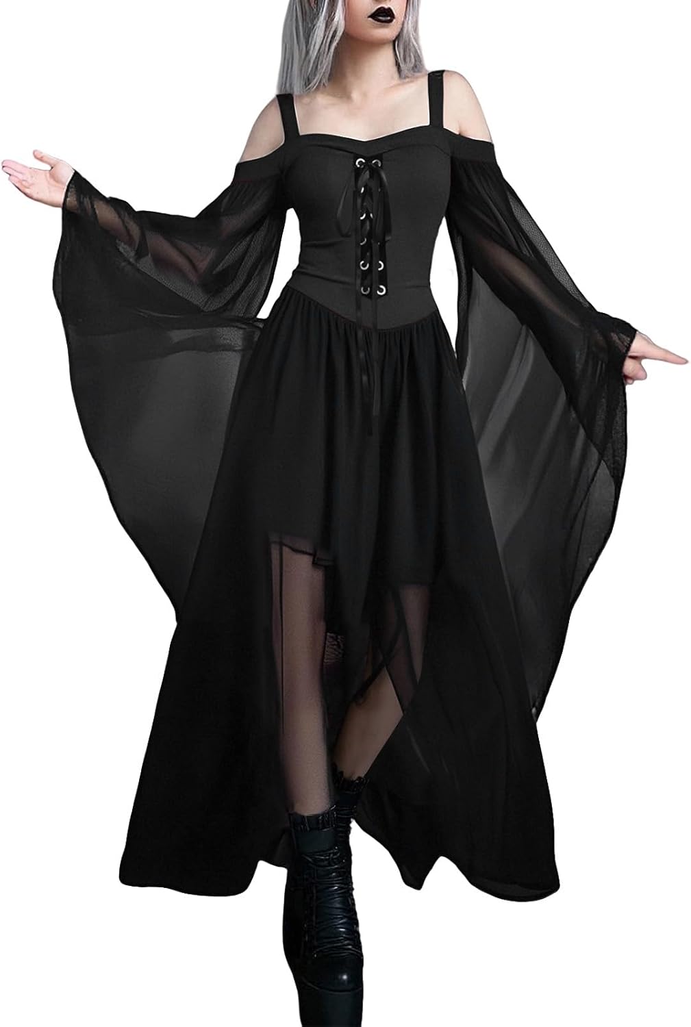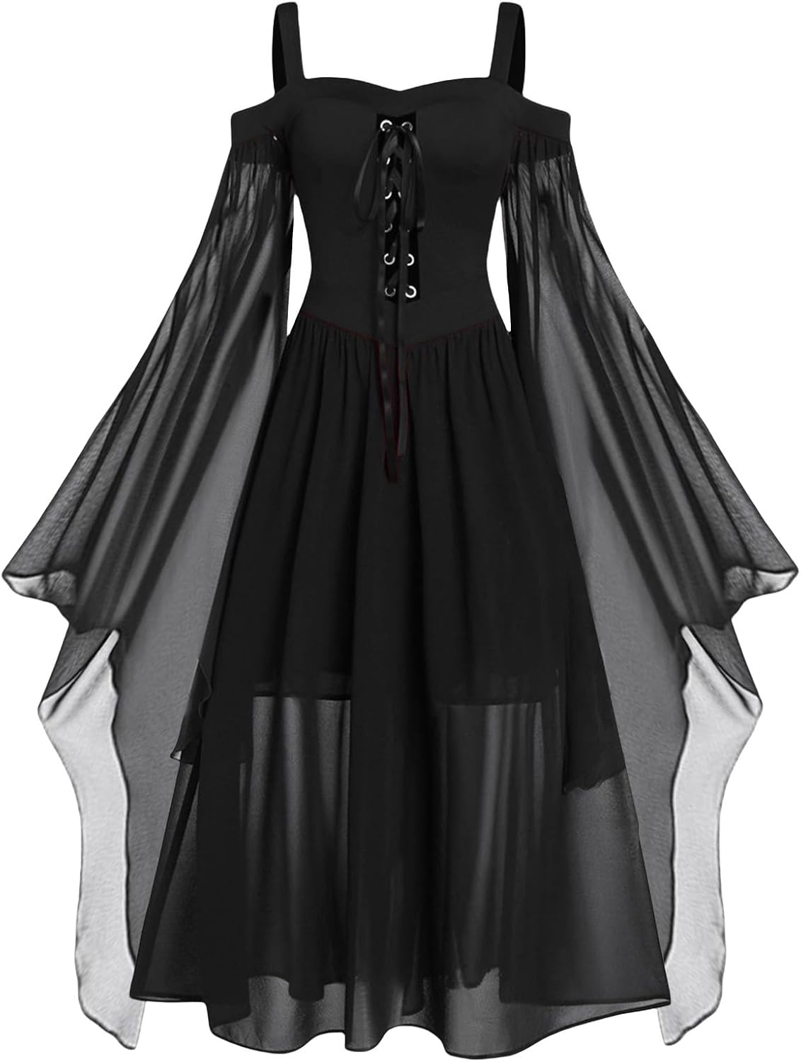 Nuoke Halloween Costumes Women’s Butterfly Sleeve Sexy Lace Gothic Dresses Medieval Dress for Carnival Halloween Party
