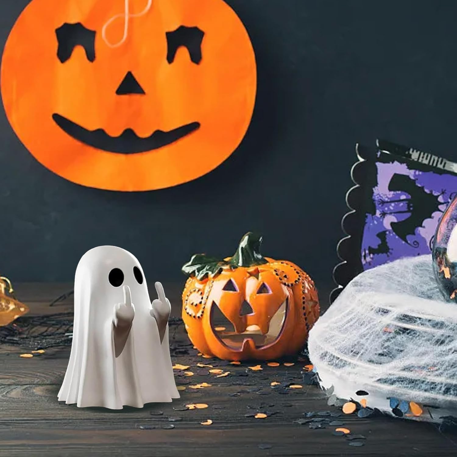đ»ăFunny Middle Finger Ghost DecorationsăThe funny middle finger ghost halloween ornaments features a cheeky ghost figurine giving the middle finger,Halloween Decorations Indoor.