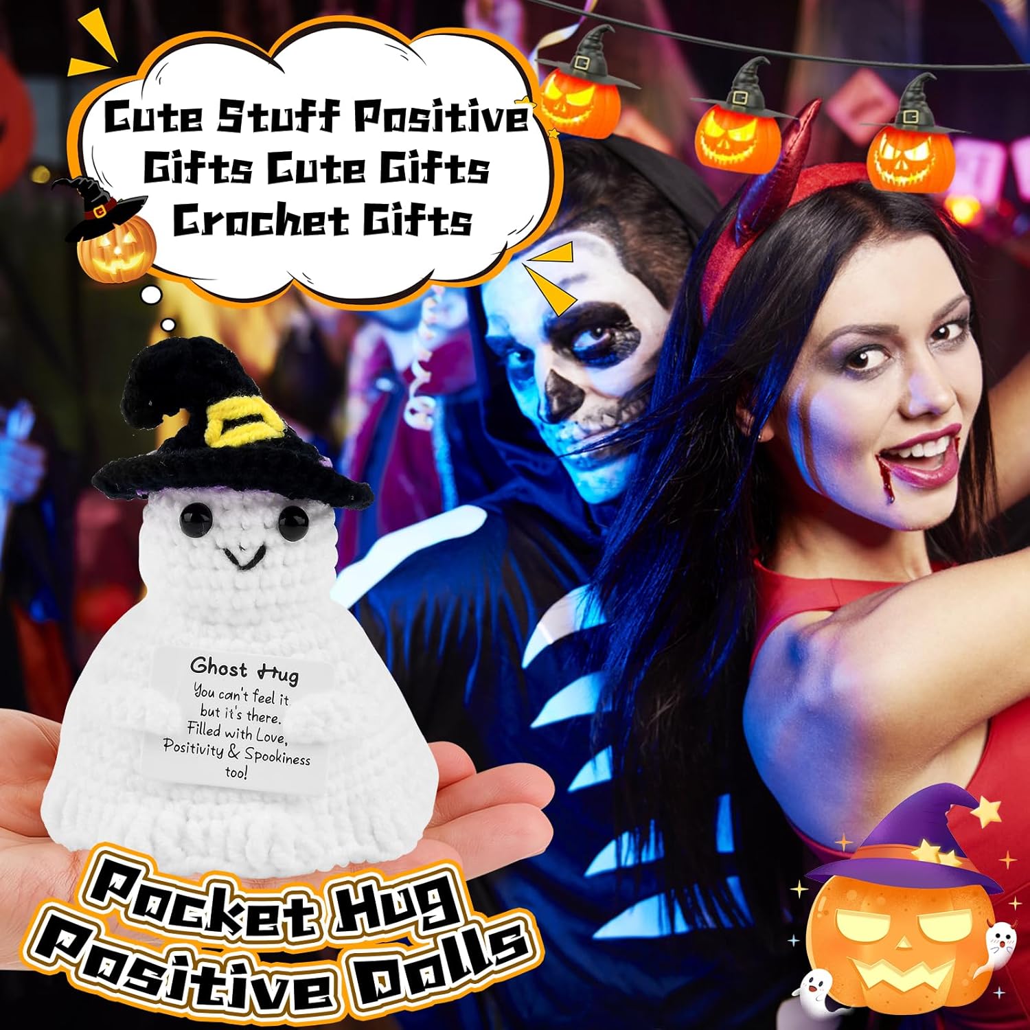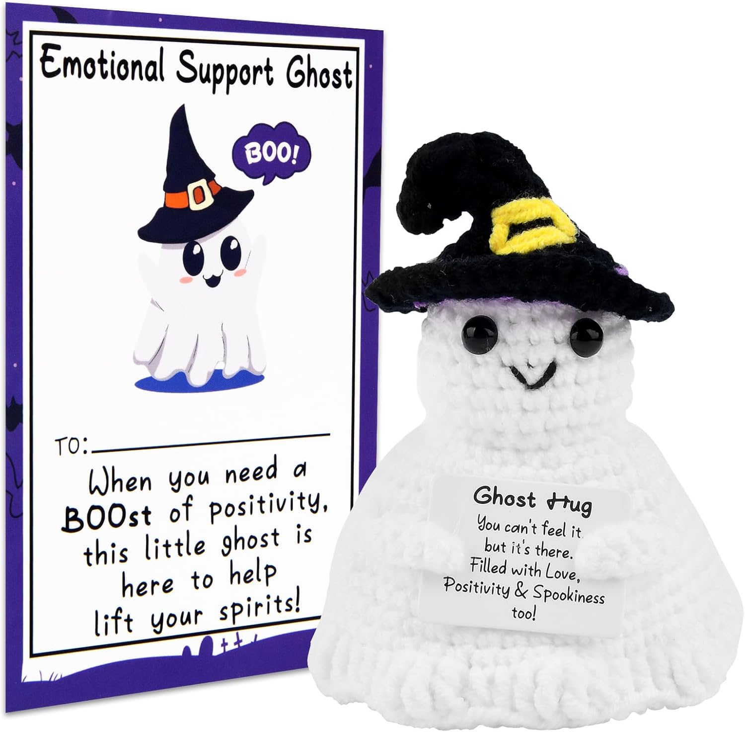 Positive Ghost, Gifts for Women Men, Stocking Fillers for Kids, Cute Funny Crochet Doll, Positive Crochet Animals, Pocket Hug