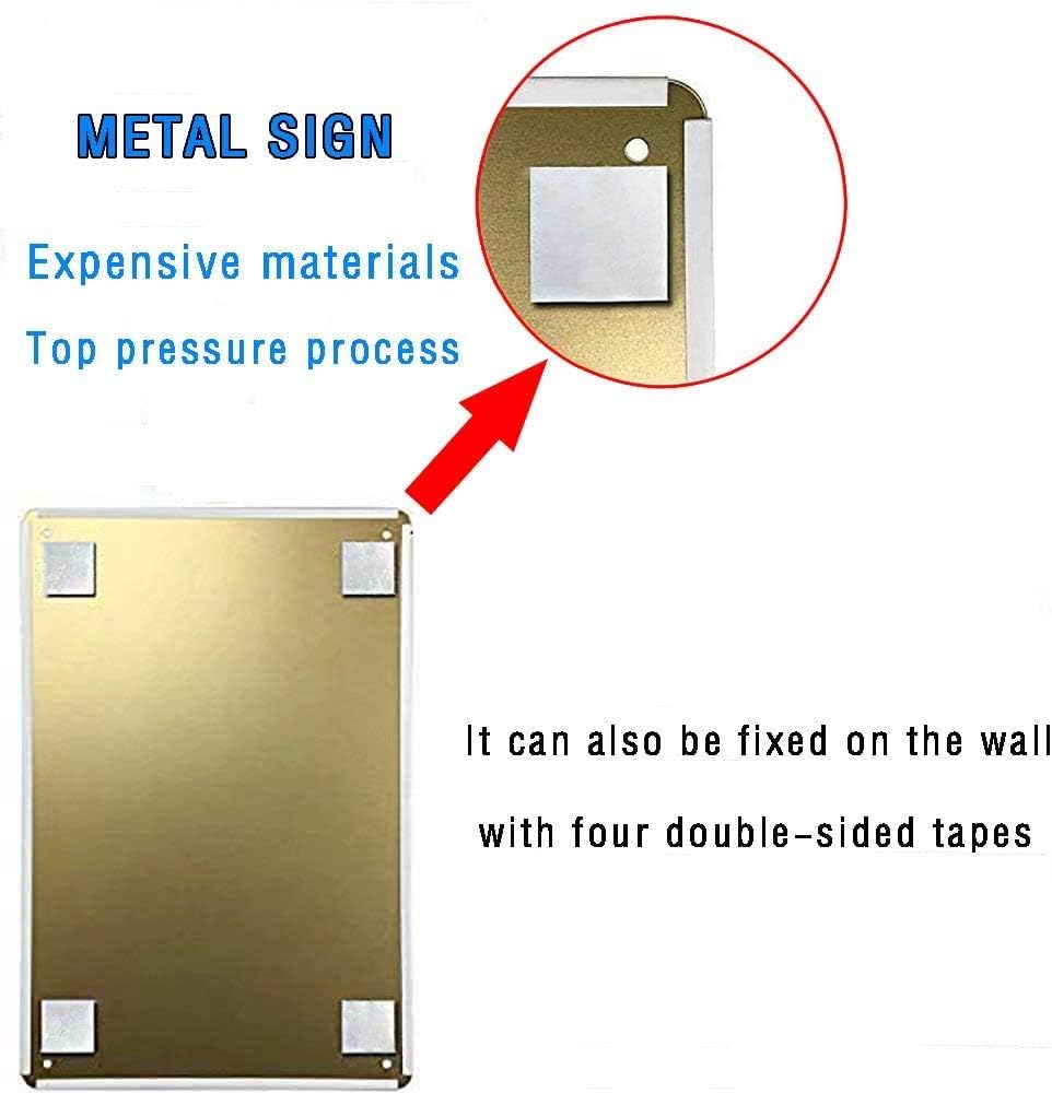 FEATURES:Tin signs are printed by waterproof and non-glare high-definition digital printing ink. It takes more genuinely vintage impressions. The metal tin sign will not fade, no matter the sun, rain, or other extreme weather.