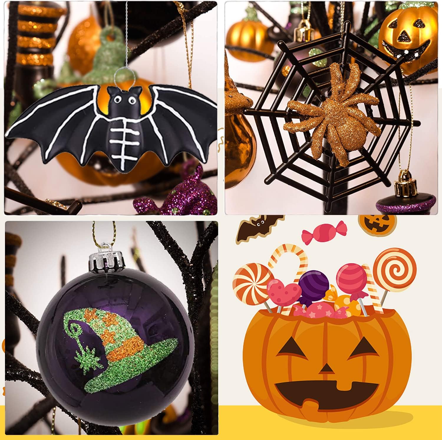 š¼ćApplicationć This Halloween ornaments set of 28 pcs, include many kinds of shape, as, witchs, bats, witch boots, spider, pumpkins etc. Perfect for DIY tabletop decorating and enriching your Halloween tree, tabletop decoration and DIY for wreaths, garlands or door decor. It can perfectly create a festive atmosphere in your interior and also makes an excellent gift.