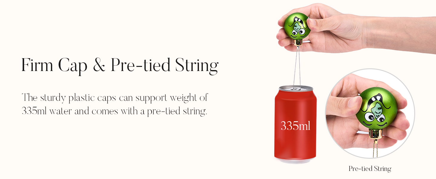 【Firm Cap & Ready to Hang】The sturdy plastic caps can support the weight of 335ml of water and come with a pre-tied string, making it easy to hang them on your tree or other desired locations