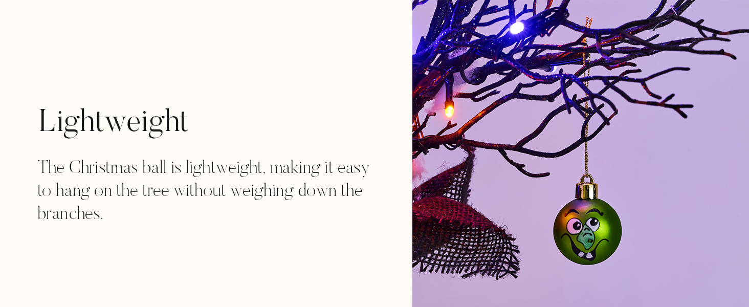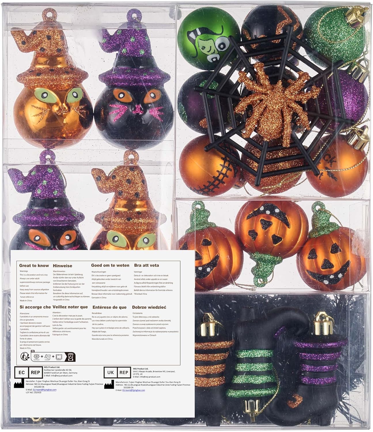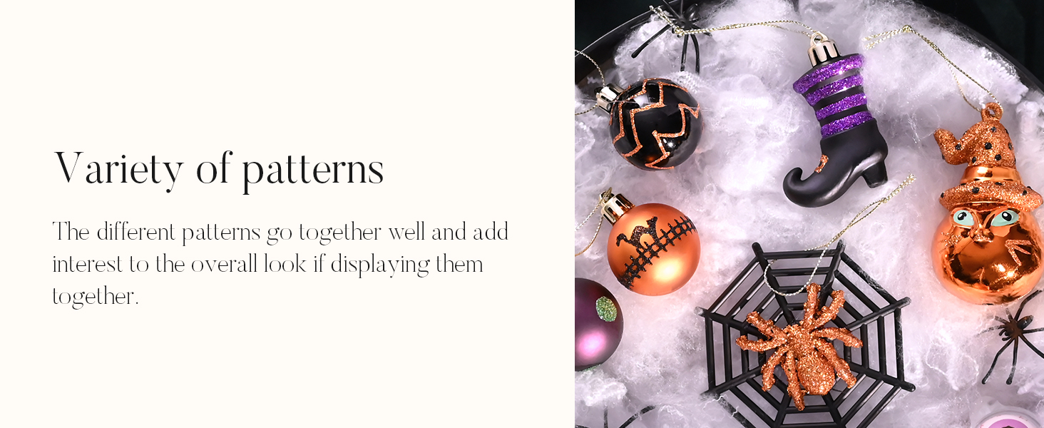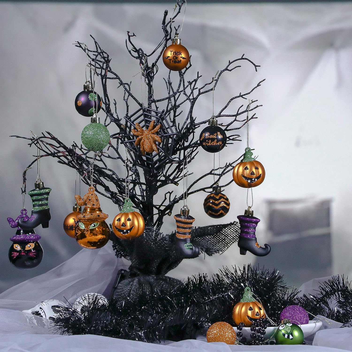 【Exquisite Craftsmanship】Our halloween tree decorations include 3 special finishes: shiny, matte, and litter. The multi-finish and novelty shape ornaments meet all your favorite tree ornament needs, and it has consistent coloration with exceptional color fastness, making them look exquisite