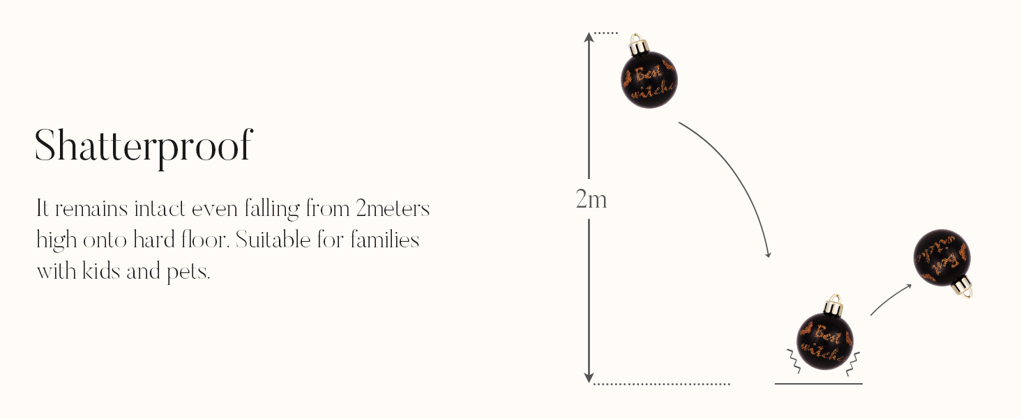 【Shatterproof】The ornament set of halloween decor remains intact even after fallin from 2 meters high onto a hard floor. It is suitable for families with kids and pets
