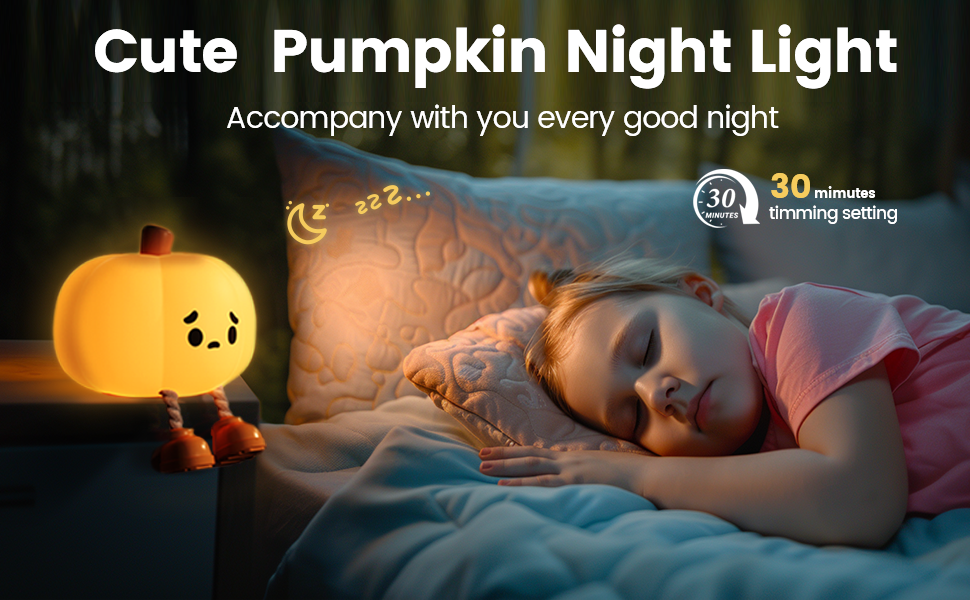 Activate Pumpkin Night Light’s 30-mins countdown. Warm glow sets sleep ambiance. Auto fades out at end, easing your child to peaceful slumber. Fosters independence & comfort.