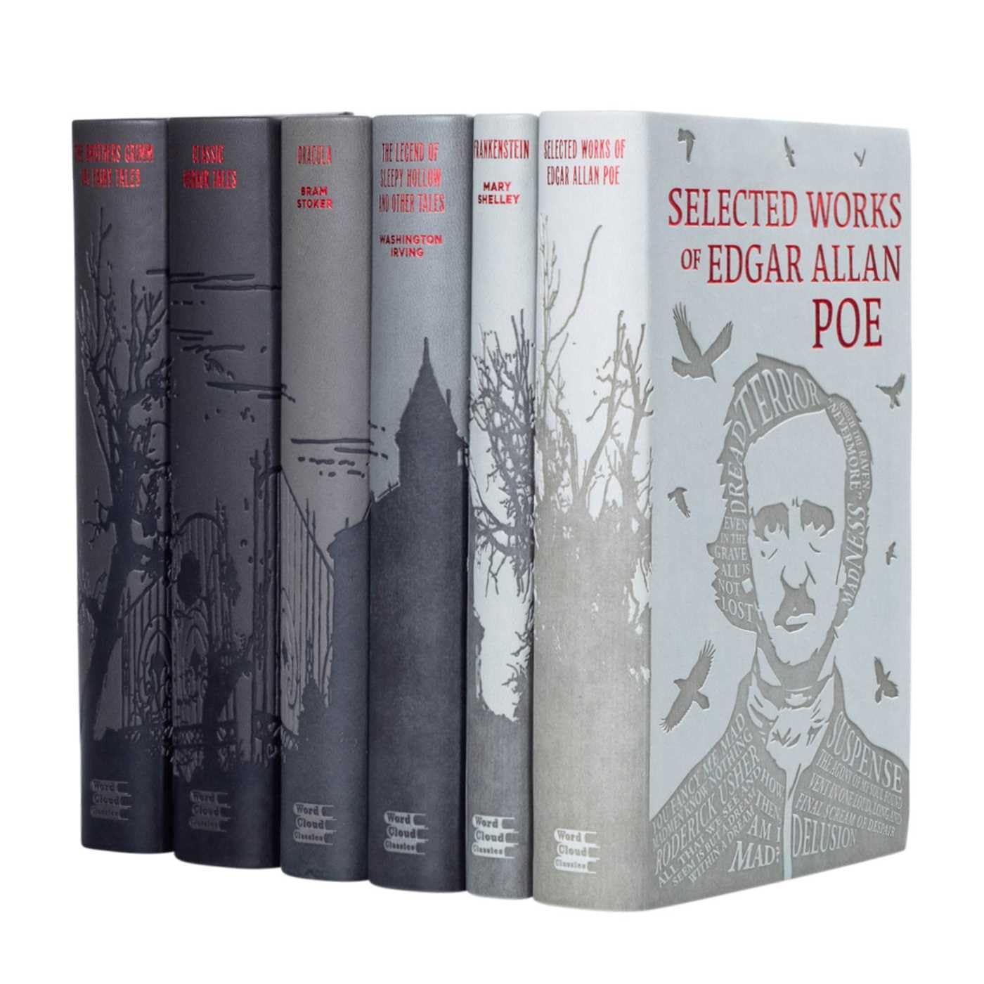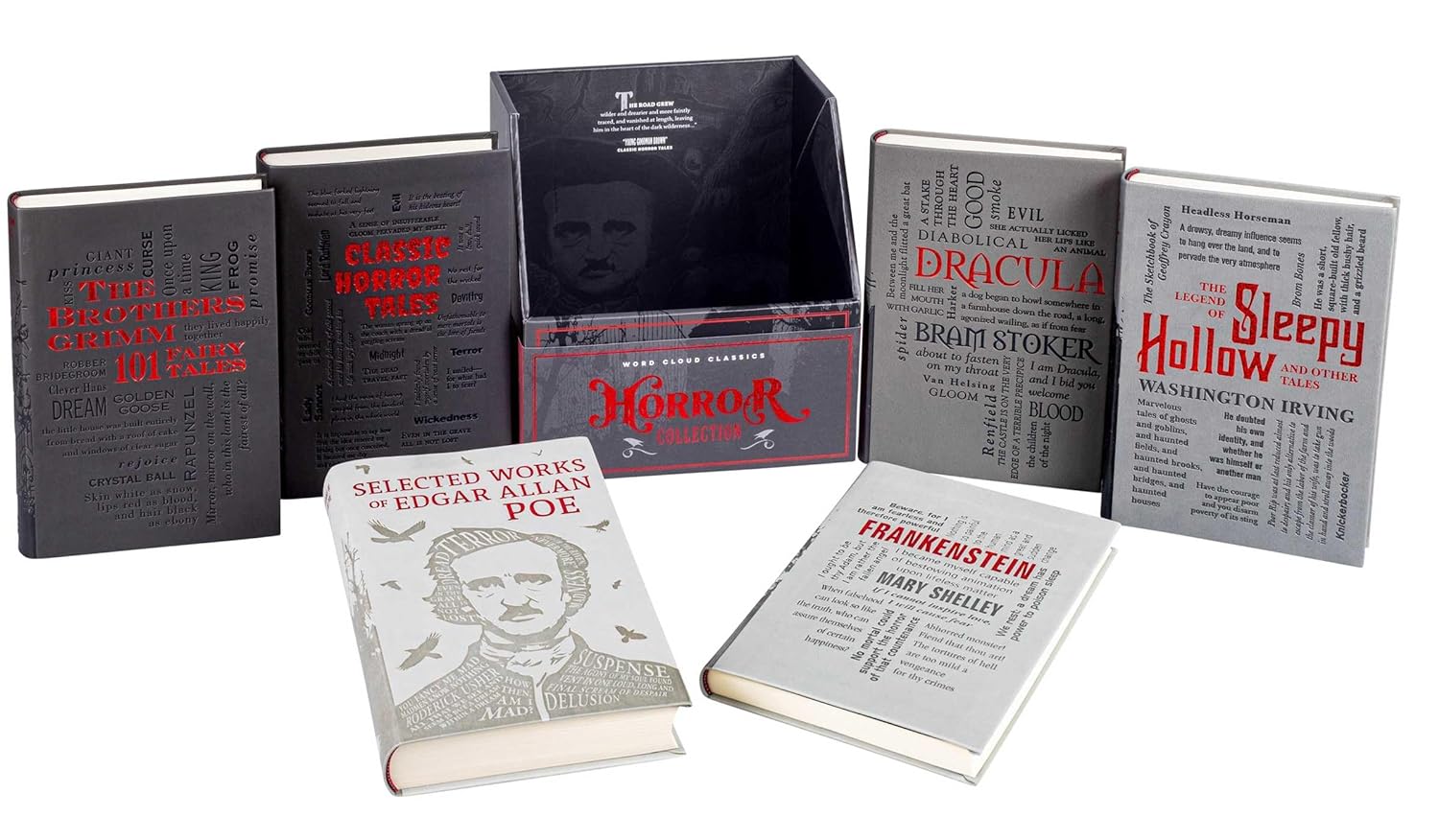 This collection of dark and haunting stories is an essential addition to the bookshelf of anyone who enjoys classic literature and tales of horror. The six volumes in this boxed set include short stories from esteemed authors such as Nathaniel Hawthorne, Edith Wharton, and H. P. Lovecraft; macabre works by Edgar Allan Poe and Washington Irving; the novels Dracula and Frankenstein; and more than 100 memorable fairy tales by the Brothers Grimm. Whether you’re in need of a few stories to tell around the campfire or a longer read at home on a cold winter’s night, you’ll find what you need in this specially designed Word Cloud collection.