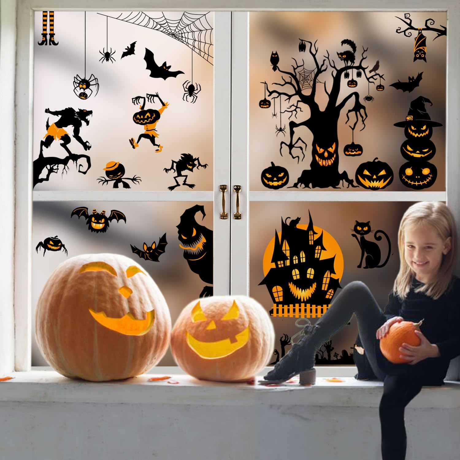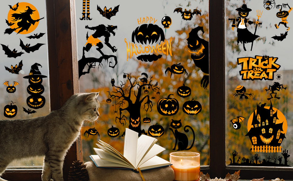 Easy to install- adhesive-free Halloween stickers for windows